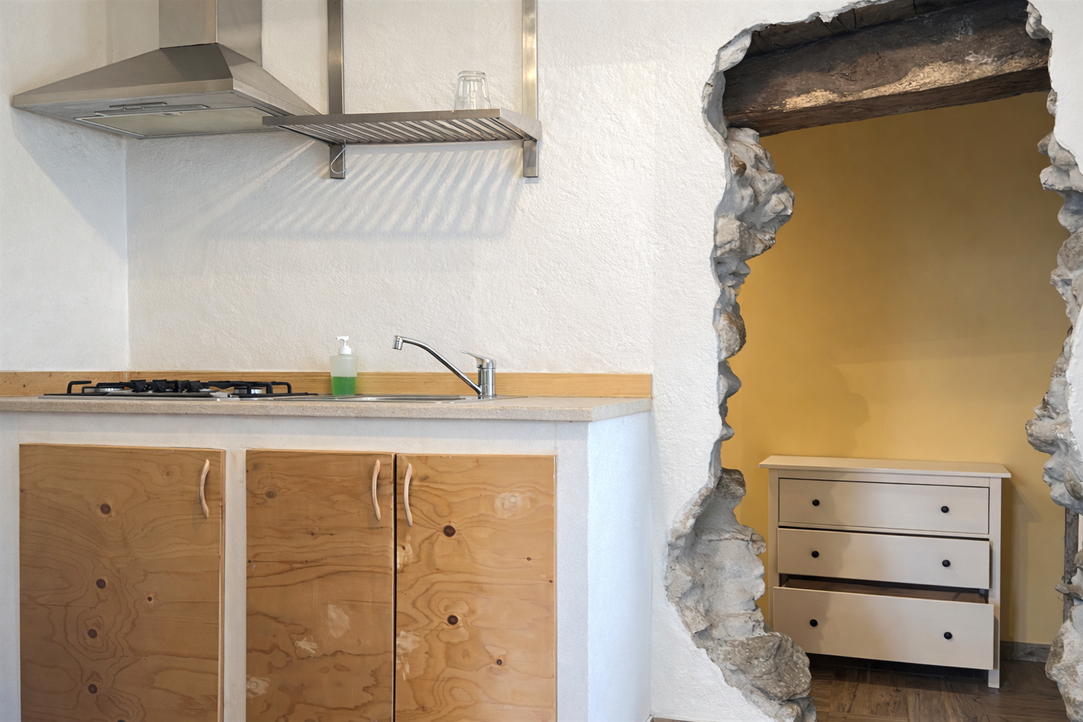 Il vero tratto distintivo è l'originale passaggio in sasso a vista, un dettaglio architettonico di grande carattere che conduce alla zona notte.