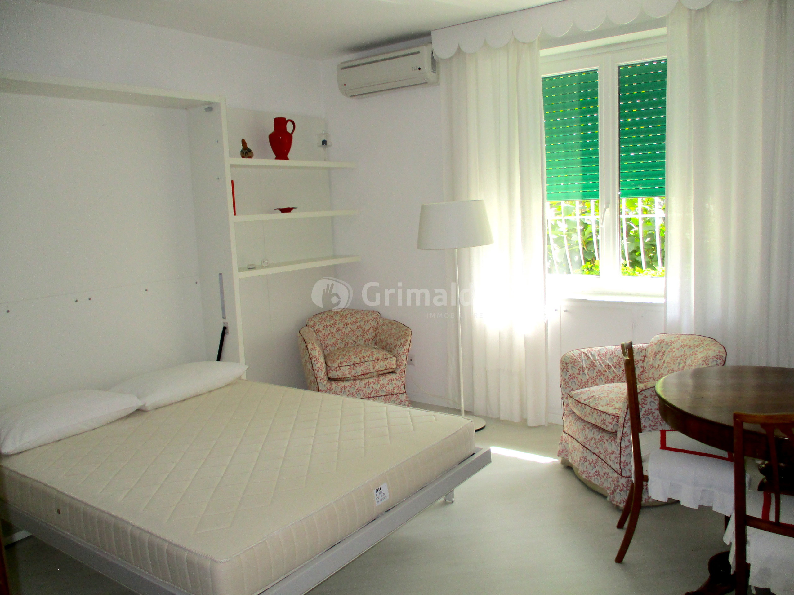 RIF AB187 - La Grimaldi Immobiliare propone in affitto TRANSITORIO, da SETTEMBRE A GIUGNO, al centro di Anzio, alle spalle di Villa Adele, appartamento di 45mq completamente ristrutturato sito al piano terra rialzato composto da ingresso, salone con parete attrezzata con letto matrimoniale a scomparsa, cucinotto a vista, camera singola, bagno, cortile abitabile con tende da sole e giardino.