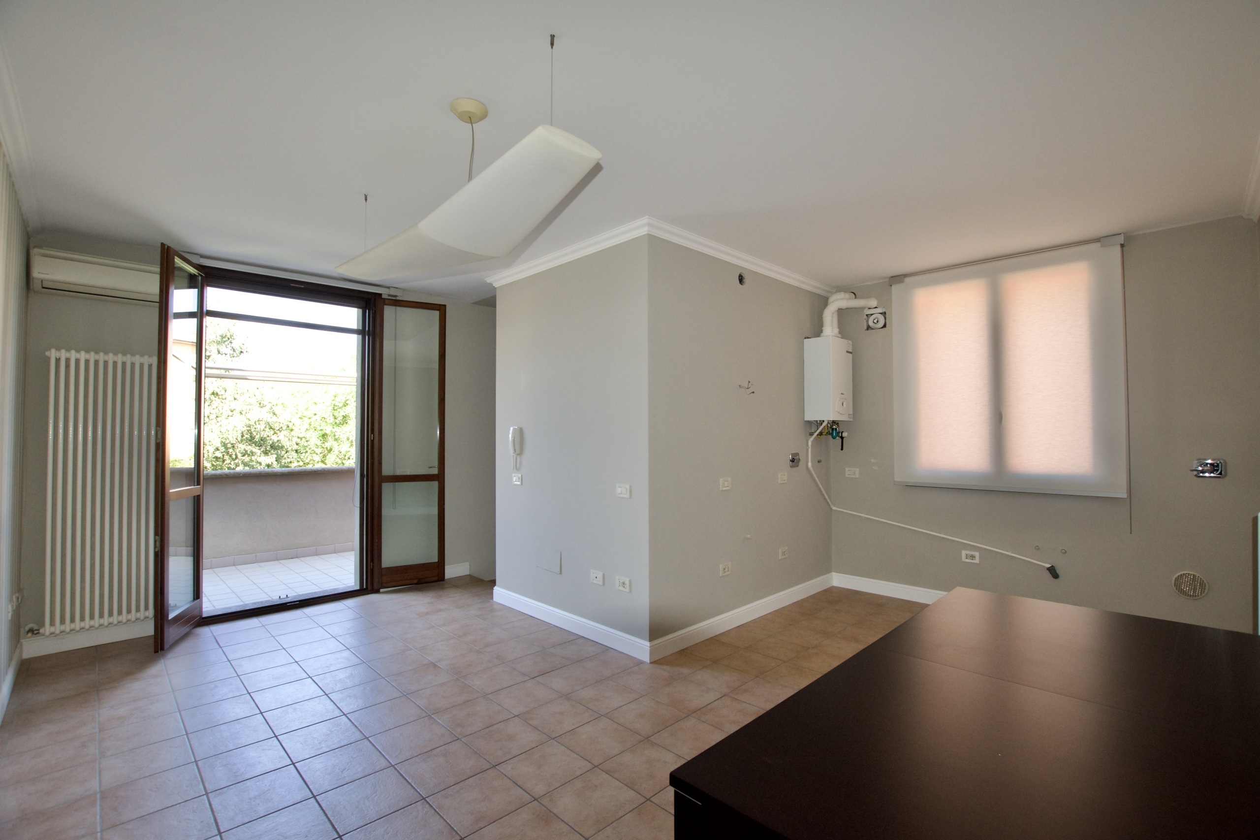 Qui troviamo una luminosa zona giorno con angolo cottura, direttamente collegata al grande terrazzo esclusivo, ideale per vivere momenti allaperto in totale privacy.