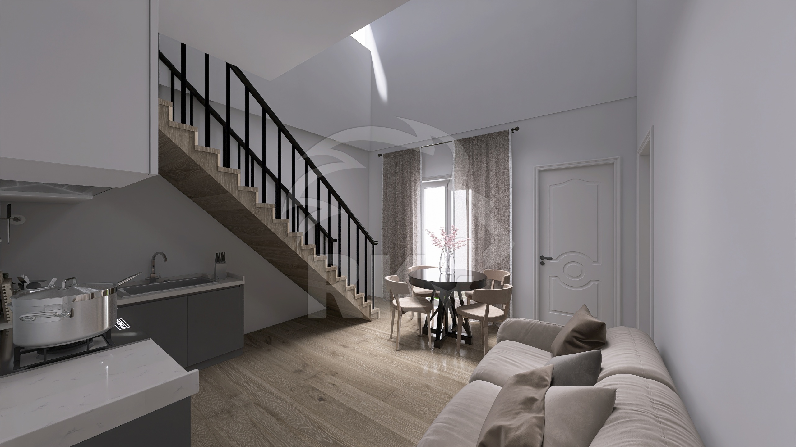 SOLUZIONE NR. 07 - BILOCALE CON CORTE ESCLUSIVA E SOPPALCO - PIANO TERRA - Unità indipendente caratterizzata da ampi spazi e altezze generose (ca 4 mt). Ingresso su zona giorno con angolo cottura e accesso diretto alla corte privata di circa 38 mq, ideale per momenti di relax all'aperto.