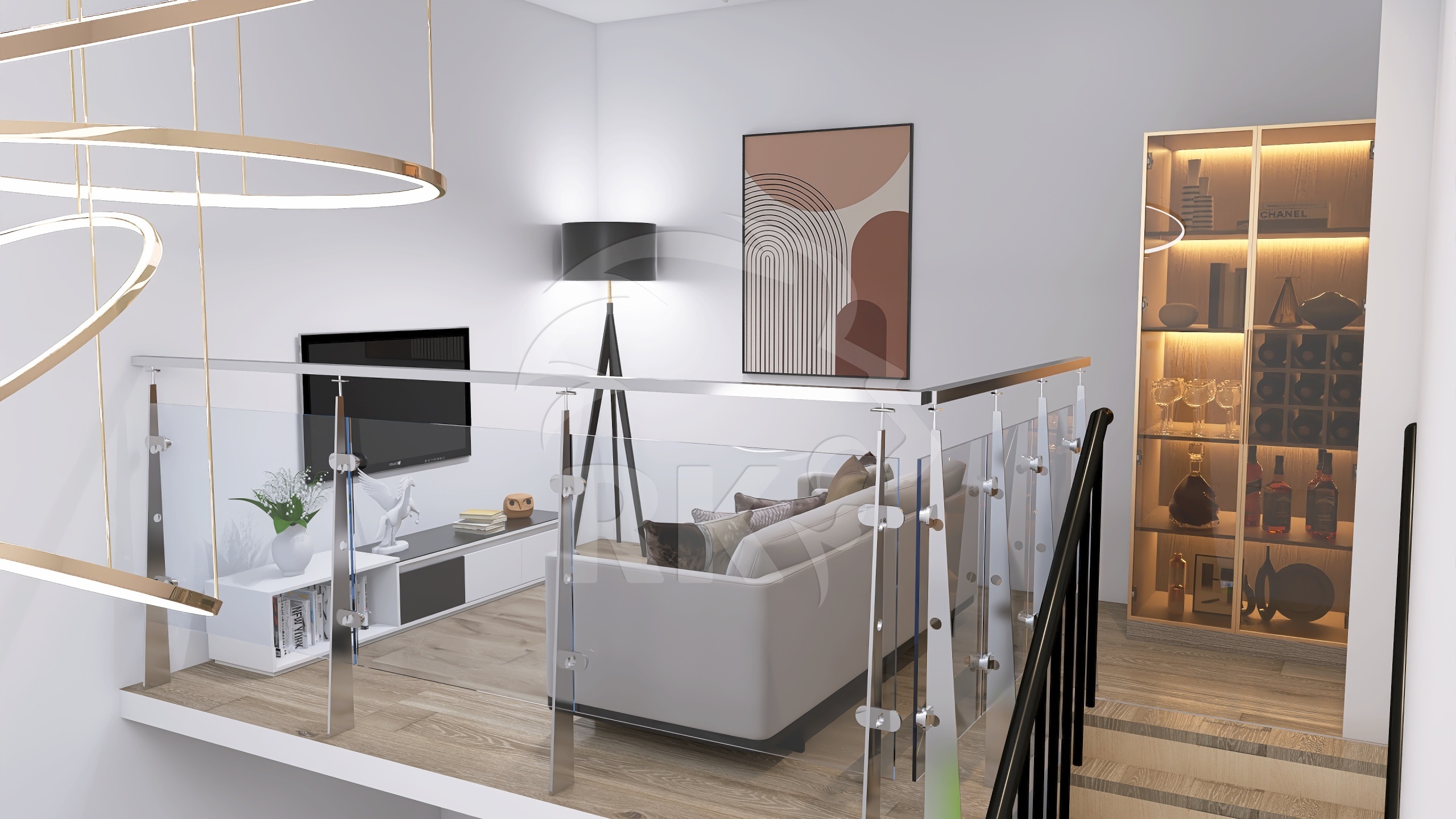 Capitolato moderno con pavimenti in gres porcellanato effetto legno, infissi in PVC ad alte prestazioni termiche e acustiche con sistema di microventilazione integrata per la salute degli ambienti.