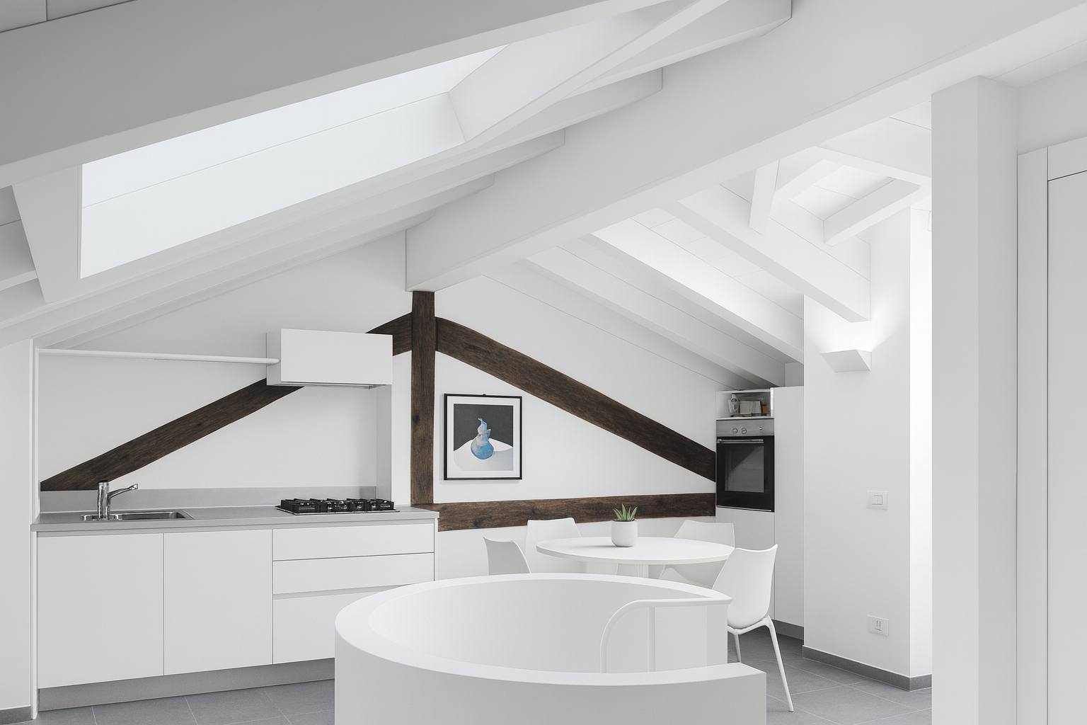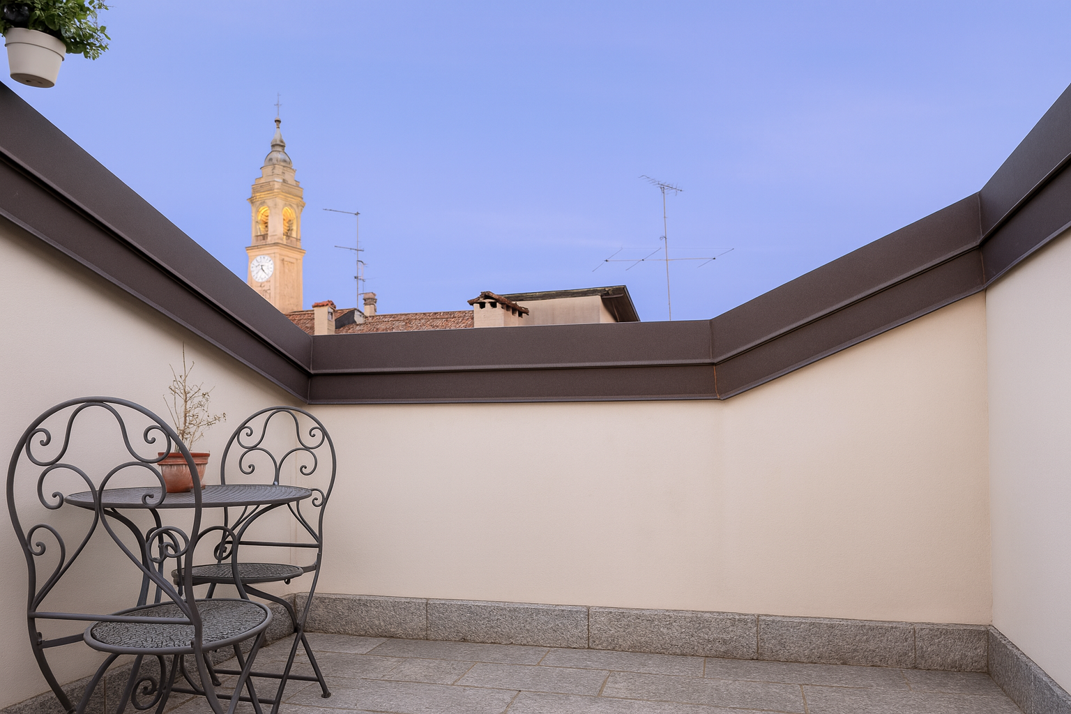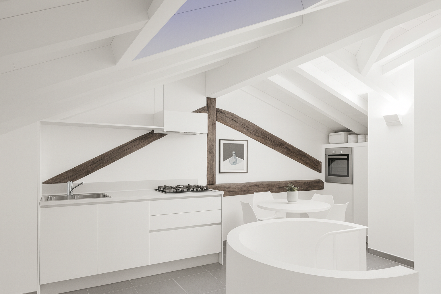 La mansarda oltre a una scala a chiocciola è servita direttamente all'interno dell'appartamento da ascensore.