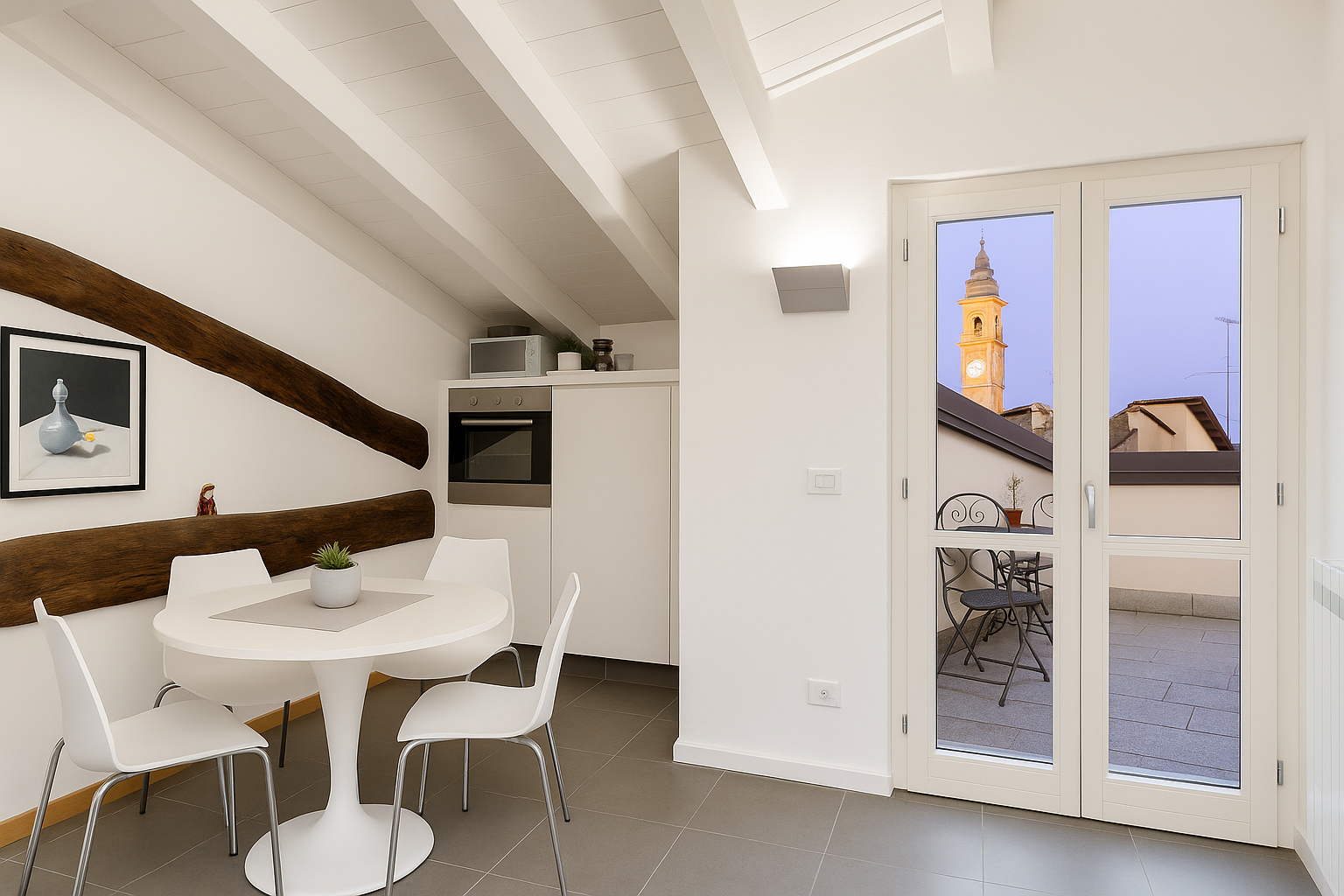 LAGO MAGGIORE - ARONA - MANSARDA DI CHARME Nel cuore di Arona, vicino alla bellissima Piazza de Popolo, all'interno di una tranquilla corte, proponiamo mansarda elegante e molto accogliente, con grande zona giorno con divano letto e affaccio su un terrazzo con una meravigliosa vista sulla Rocca, cucina a vista con affaccio su comodo e caratteristico terrazzino, cabina armadio, camera matrimoniale con un altro terrazzo e secondo bagno con doccia.