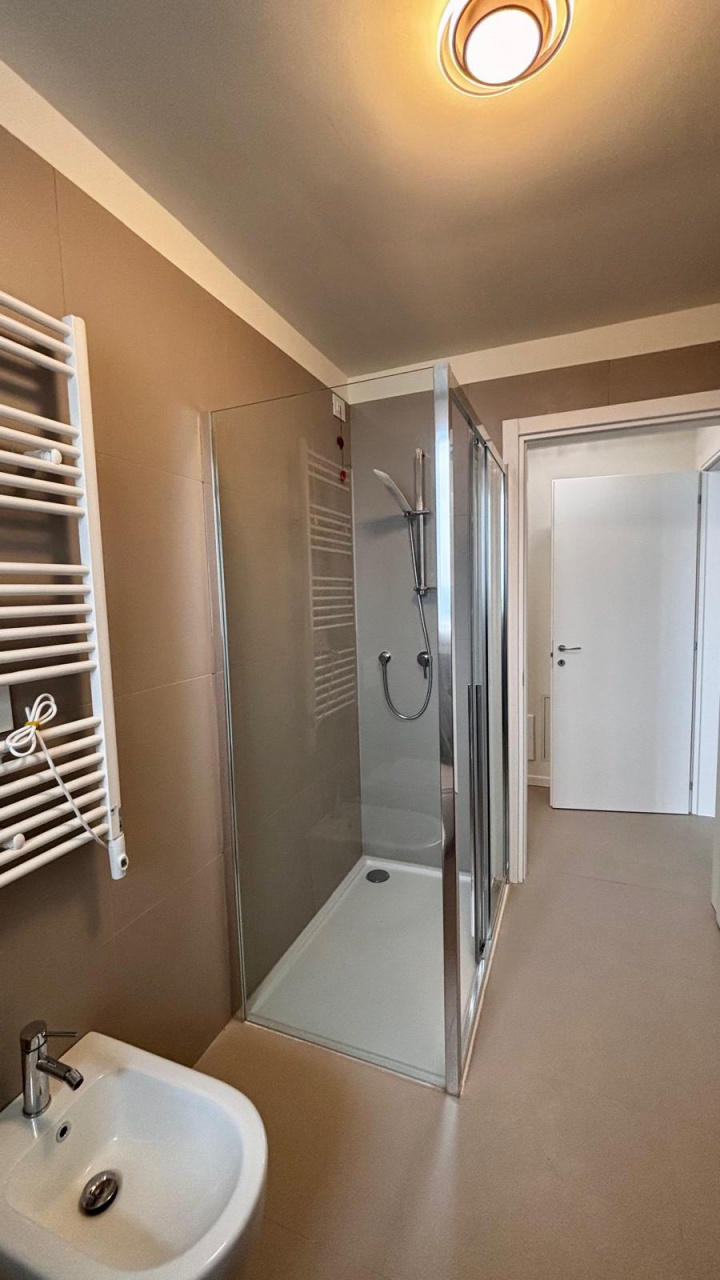 L'appartamento, luminosissimo e curato in ogni dettaglio, è completamente arredato con mobili nuovi di fascia medio-alta e dotato di tutti i comfort moderni: Riscaldamento a pavimento e raffrescamento canalizzato con VMC (ventilazione meccanica controllata) Predisposizione per impianto d'allarme , Domotica , Zanzariere su tutte le finestre Le spese condominiali annuali ammontano a circa 1.600 e includono i costi di riscaldamento, raffrescamento e VMC. Completa la proprietà un comodo box con basculante elettrica.