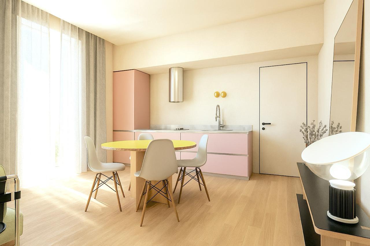 L'appartamento è posto al piano rialzato ed è molto luminoso, si compone di disimpegno, zona giorno con cucina a vista e accesso ad ampio balcone esposto a sud, bagno, ampia camera matrimoniale con portafinestra e accesso al balcone.