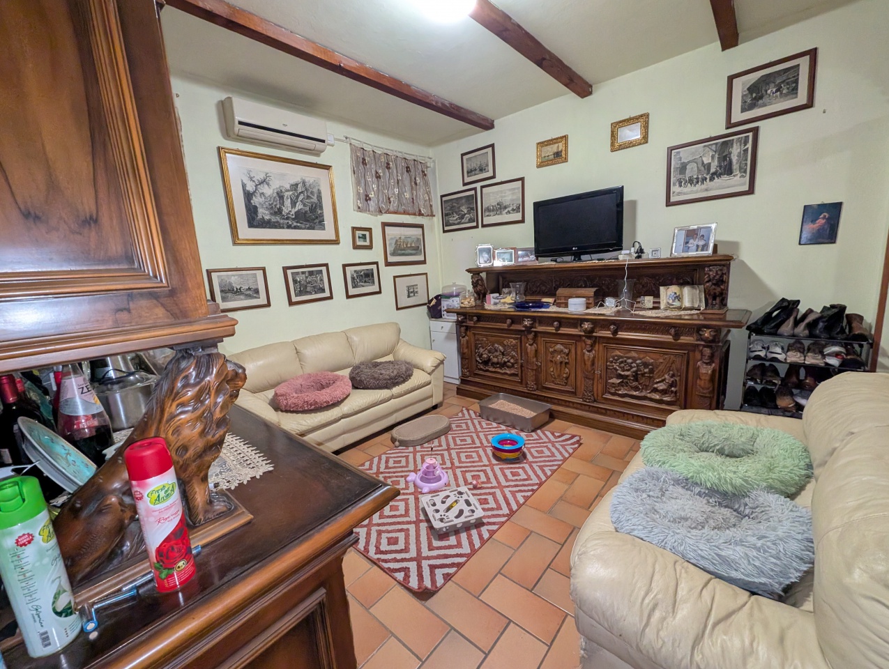 L'abitazione si compone di: soggiorno con cucinotto, cucina abitabile separata, due ampie camere matrimoniali, bagno finestrato, balcone e cantina di proprietà. Lo stile rustico è valorizzato con soffitti con travi a vista in legno, pavimenti in cotto.