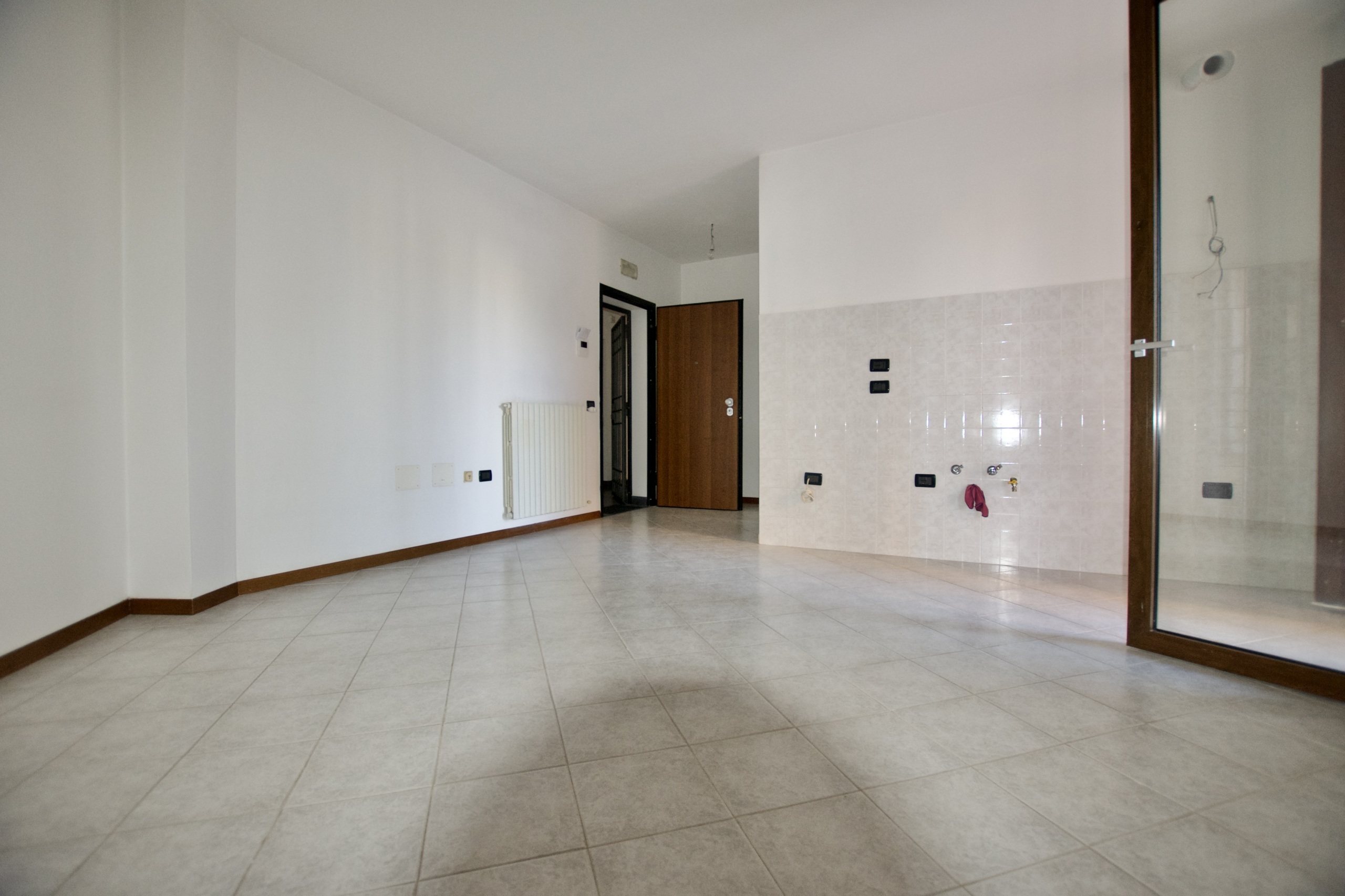 L'immobile, servito da ascensore, è posto al piano rialzato e composto da ingresso, sala con angolo cottura dalla quale si accede direttamente al grande terrazzo esclusivo, disimpegno, bagno con doccia e una camere con spaziosa cabina armadio.