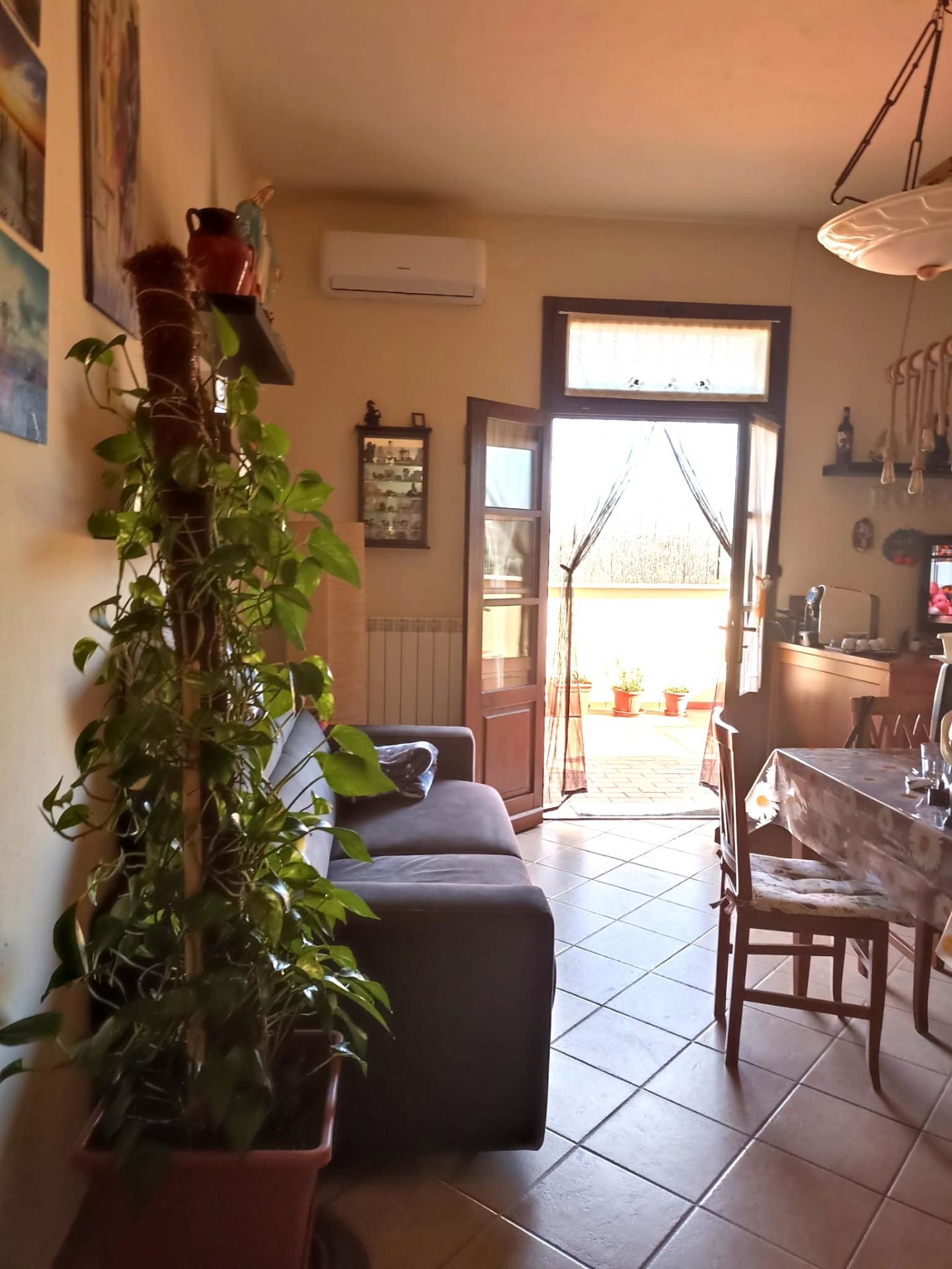 Mediante la scala esterna di un piccolo fabbricato di soli 5 appartamenti ristrutturato nel 2005, si accede allabitazione composta da: Ingresso-disimpegno, accogliente zona living illuminata da una bella luce naturale con soggiorno-zona pranzo e ampia cucina a vista con accesso diretto alla grande terrazza che raddoppia gli spazi vivibili e caratterizza questa pratica e accogliente abitazione con la superficie esterna da sfruttare secondo necessità. Camera matrimoniale illuminata da due finestre, bagno finestrato con doccia e comodo ripostiglio.