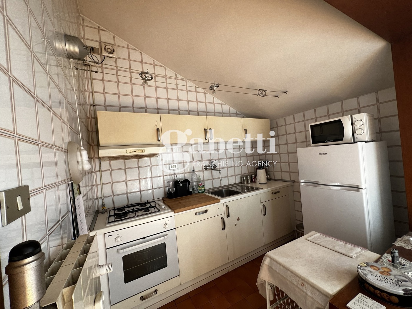 L'immobile, in discrete condizioni, composto da ingresso su sala con terrazza, tinello, camera da letto con accesso alla seconda terrazza e bagno.