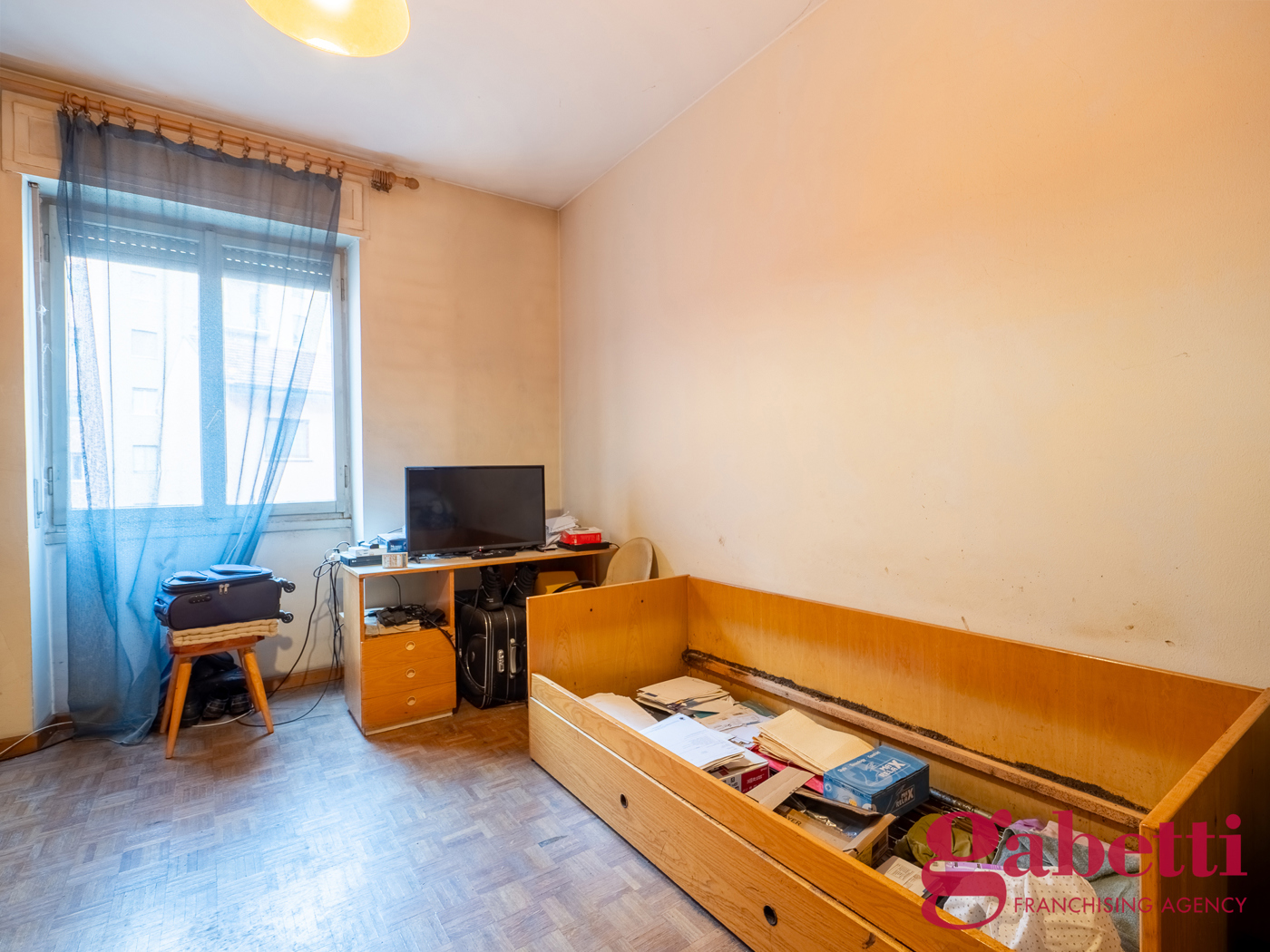 Attualmente si compone di ingresso, soggiorno con balcone, cucina abitabile separata, ampia camera matrimoniale, e bagno finestrato con box doccia.