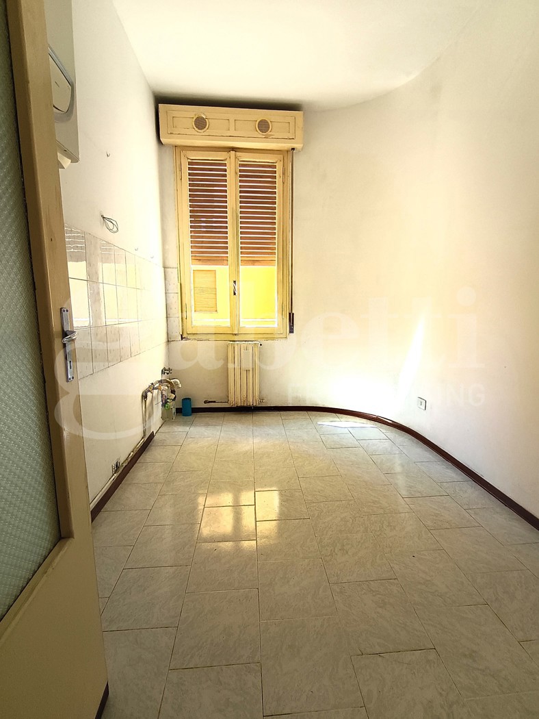 Bilocale da ristrutturare al secondo piano in palazzo di sei piani totali servito da ascensore con ingresso, cucina abitabile, soggiorno, una camera matrimoniale con balcone con affaccio su cortile interno, un bagno.