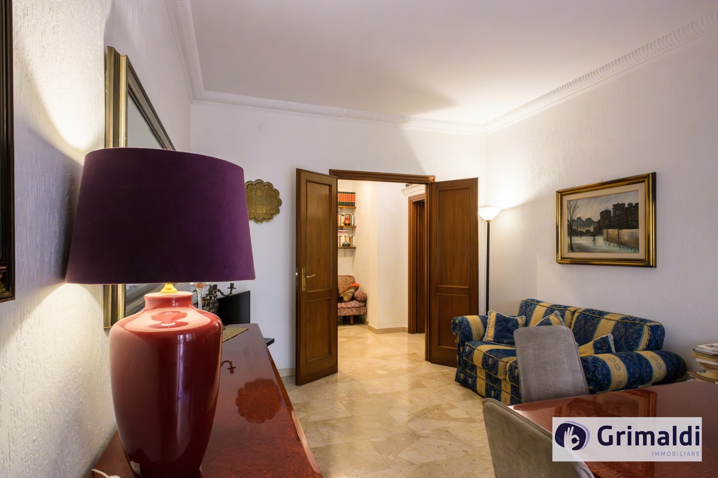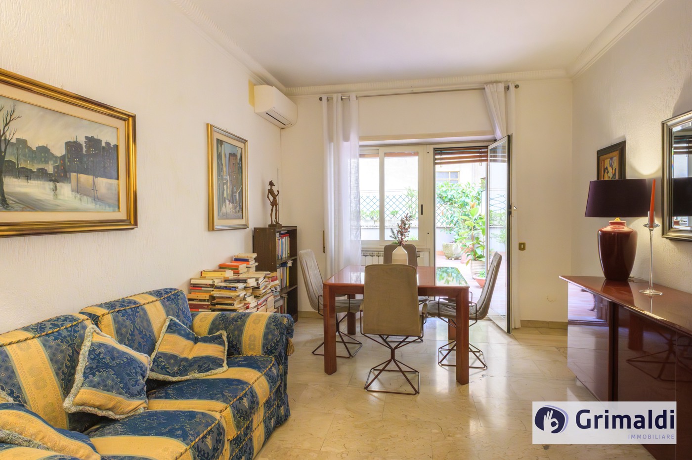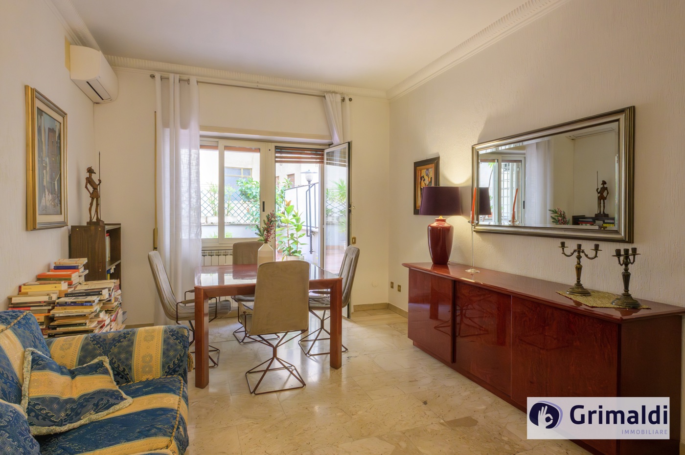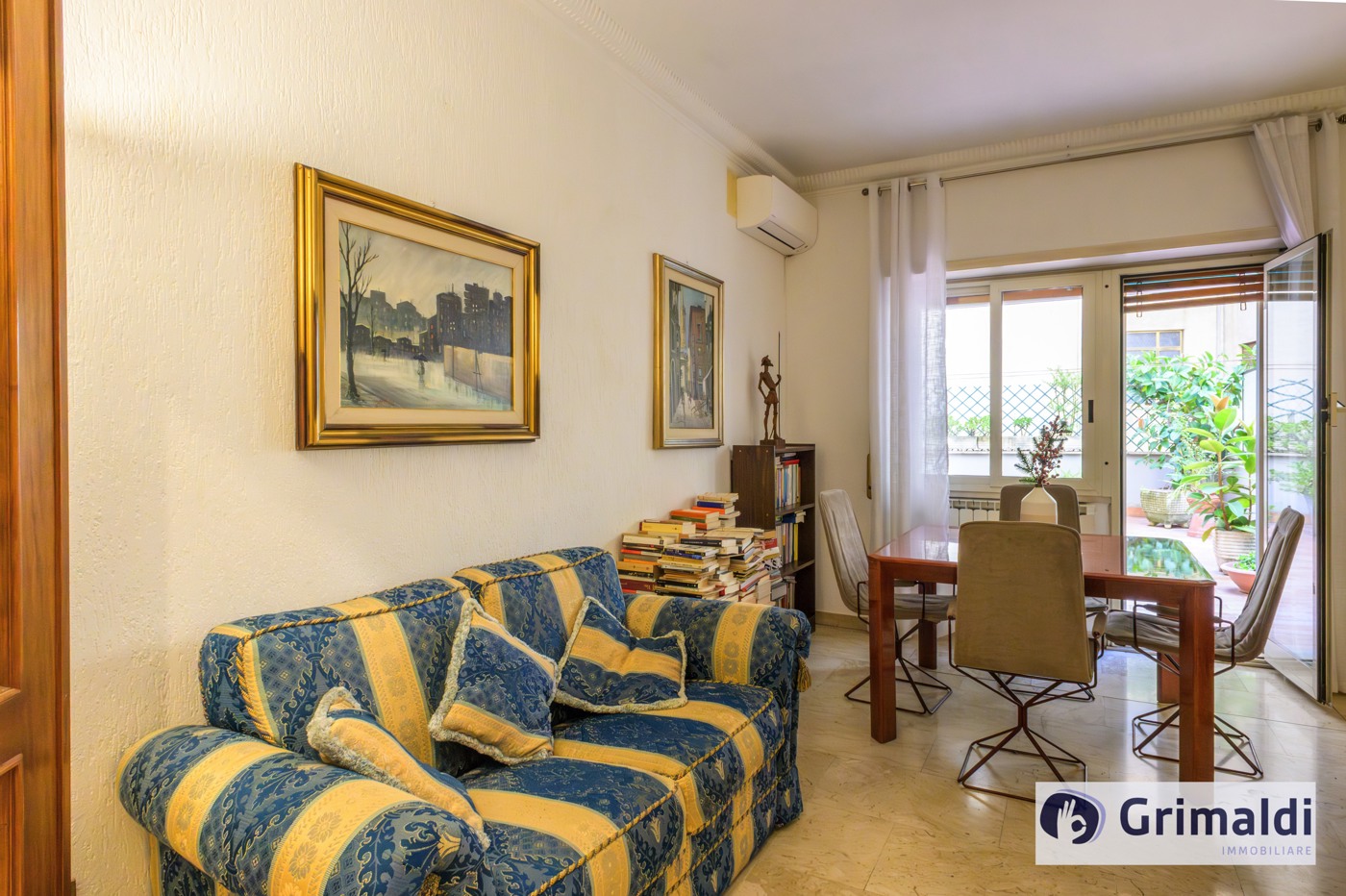 I punti di forza dellappartamento sono rappresentati dal terrazzo e dagli alti soffitti.