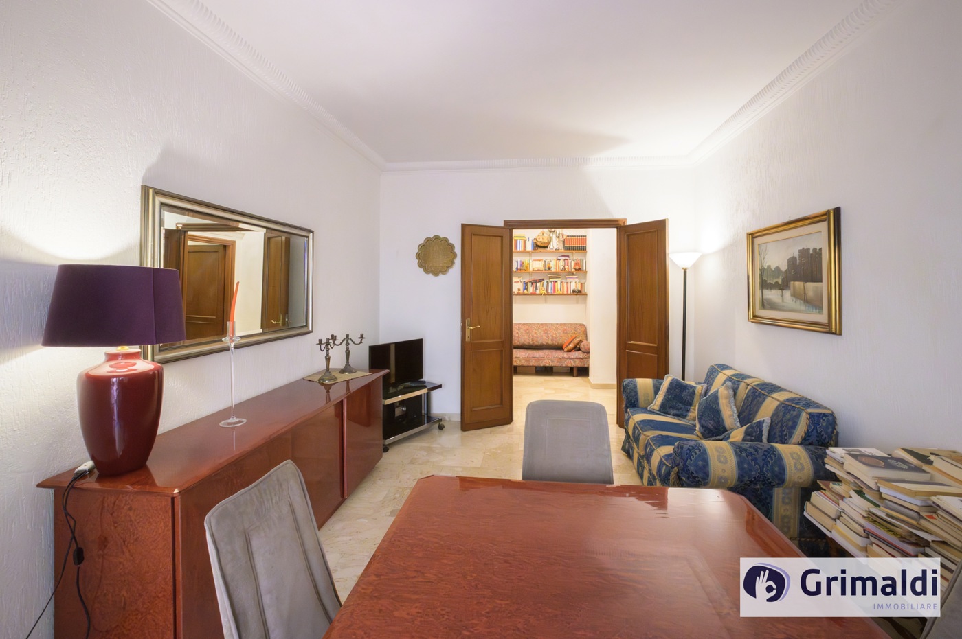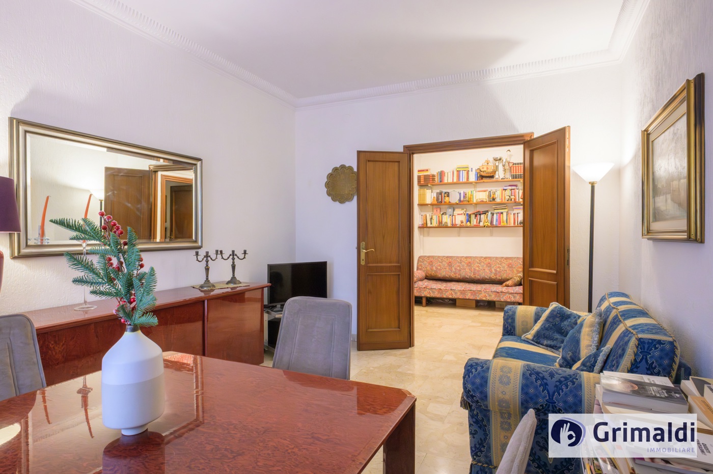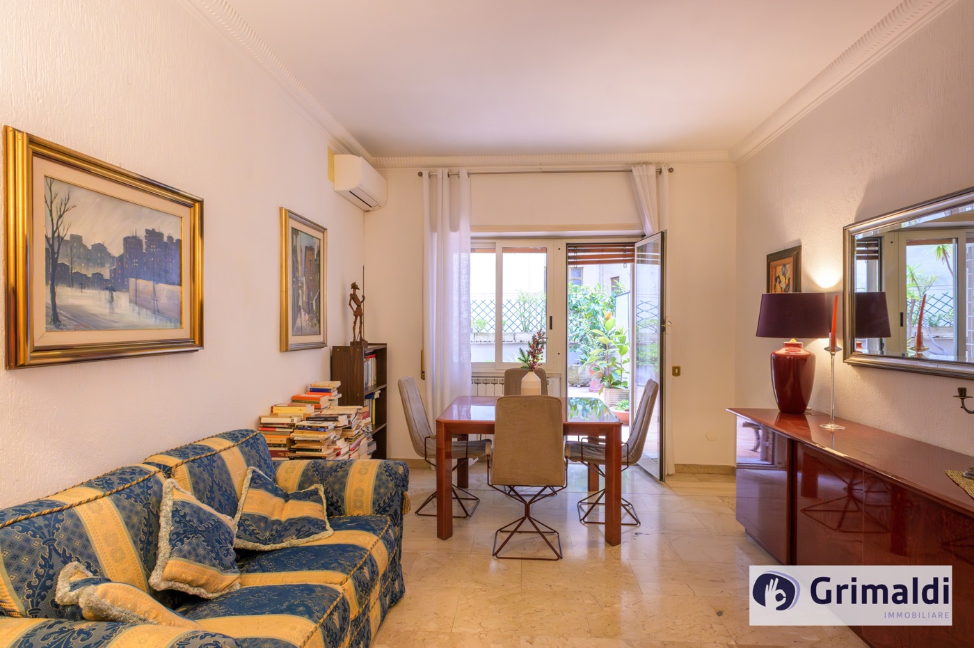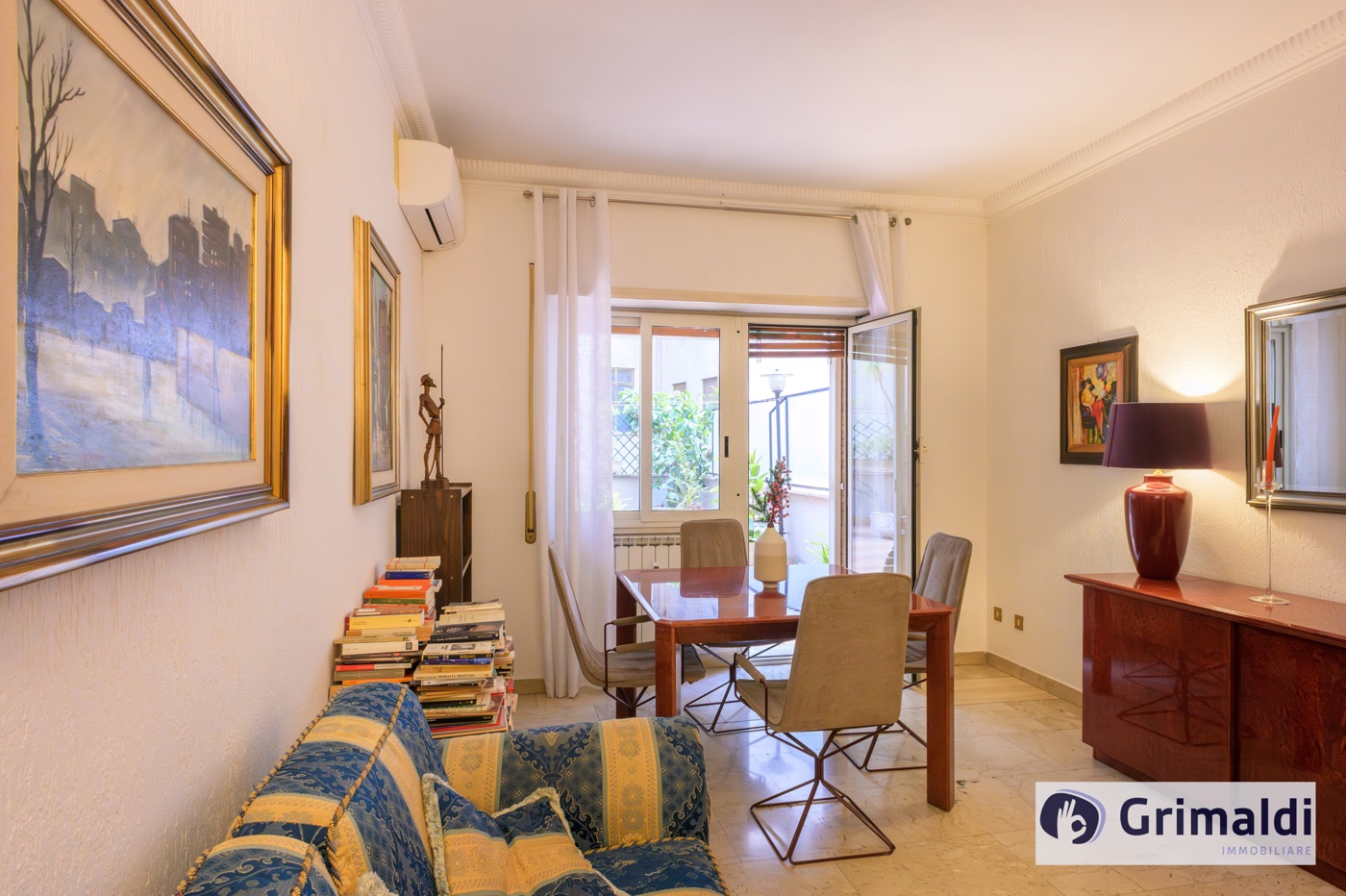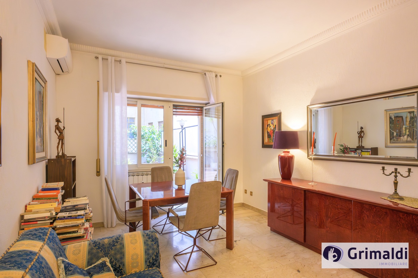 I punti di forza dellappartamento sono rappresentati dal terrazzo e dagli alti soffitti.