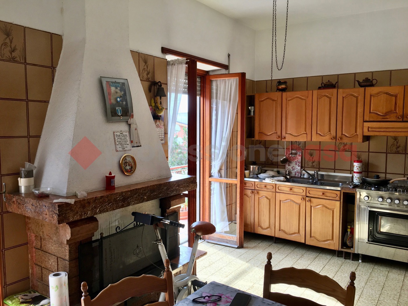L' appartamento posto al primo piano in un edificio rivestito a cortina di solo due piani, sprovvisto di ascensore senza costi condominiali, attualmente composto da: ampio ingresso, cucina vivibile con camino e due porte finestre, soggiorno, camera matrimoniale, bagno con vasca e ripostiglio.