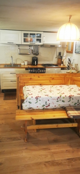 Un ampio soggiorno con angolo cottura a vista ,una cameretta con finestra alta, bagno completamente ristrutturato da poco, corte esclusiva fronte e retro.