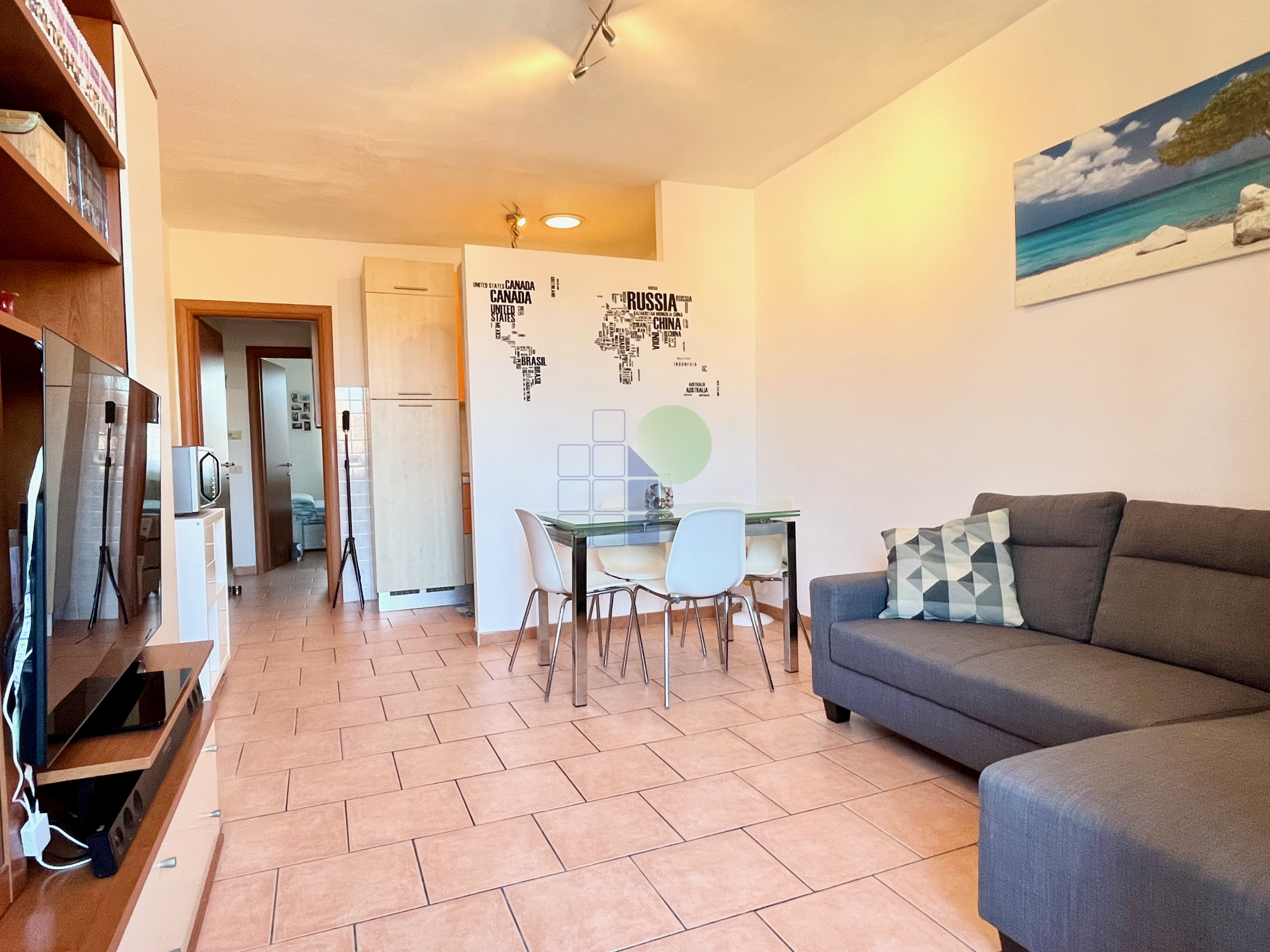 Si arriva all'appartamento da scala indipendente, si entra nel comodo soggiorno, un ambiente luminoso diviso dal cucinotto da una quinta in muratura; oltre Il disimpegno notte dà accesso alla camera matrimoniale ed al bagno con vasca.