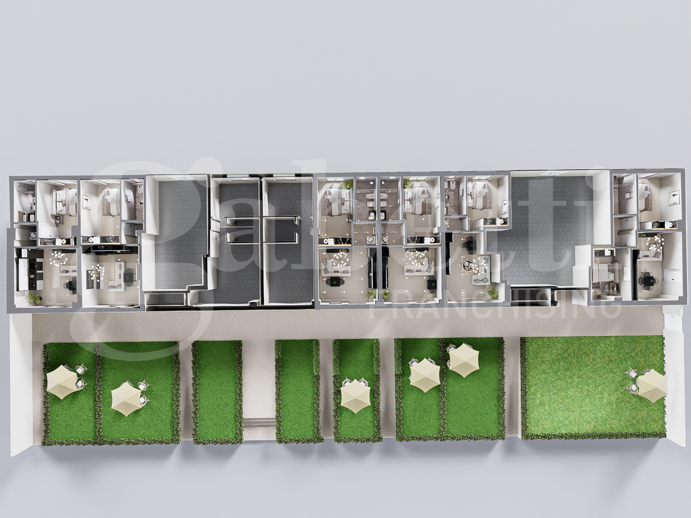 Proponiamo in vendita, in contesto di totale riqualificazione con consegna estate 2026, luminoso bilocale posto al piano terra con ingresso indipendente dal meraviglioso giardino privato di 43mq circa e composto da: zona giorno con parete cottura a vista, camera da letto, disimpegno arredabile e bagno finestrato.