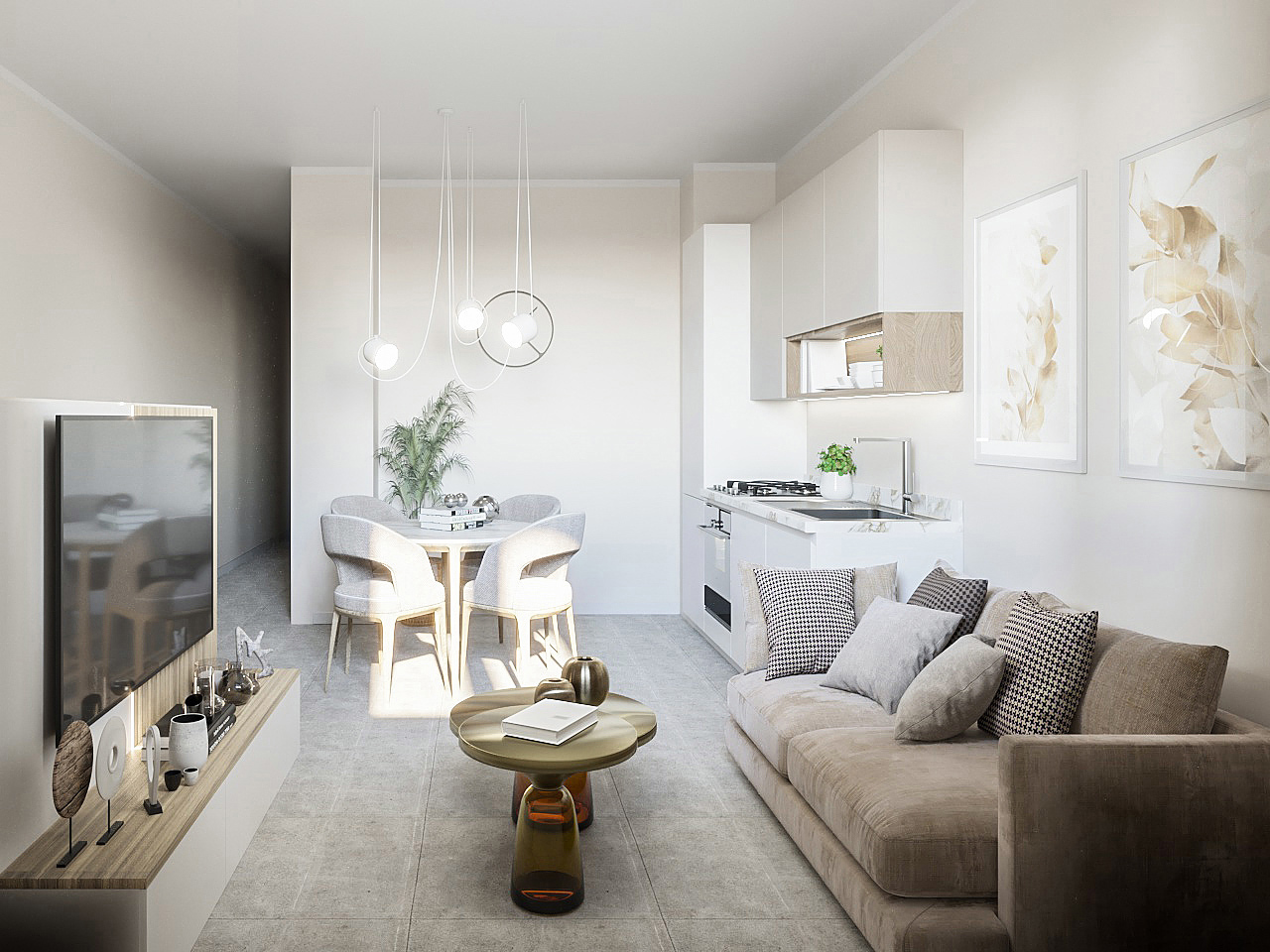 Il capitolato prevede interventi di isolamento termico-acustico certificati in classe energetica A. Le foto-render in annuncio sono rappresentative dei reali ambienti ed offrono una possibile soluzione di arredo.