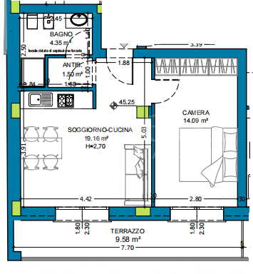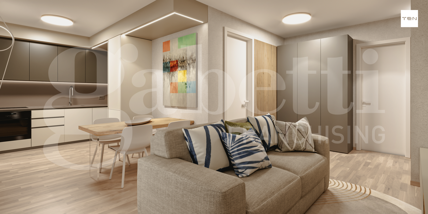 CONSEGNA FINE 2027 Lappartamento composto da ingresso su soggiorno con cucina a vista, camera da letto matrimoniale, bagno, antibagno e terrazzo privato.