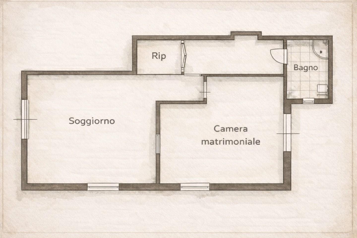 Si entra direttamente in un luminoso soggiorno-pranzo, il cuore della casa: uno spazio da vivere ogni giorno, tra momenti di relax e convivialità. Un disimpegno accompagna alla zona notte, dove troviamo una comoda camera matrimoniale, un bagno finestrato con doccia e un pratico ripostiglio che rende lorganizzazione semplice e funzionale.