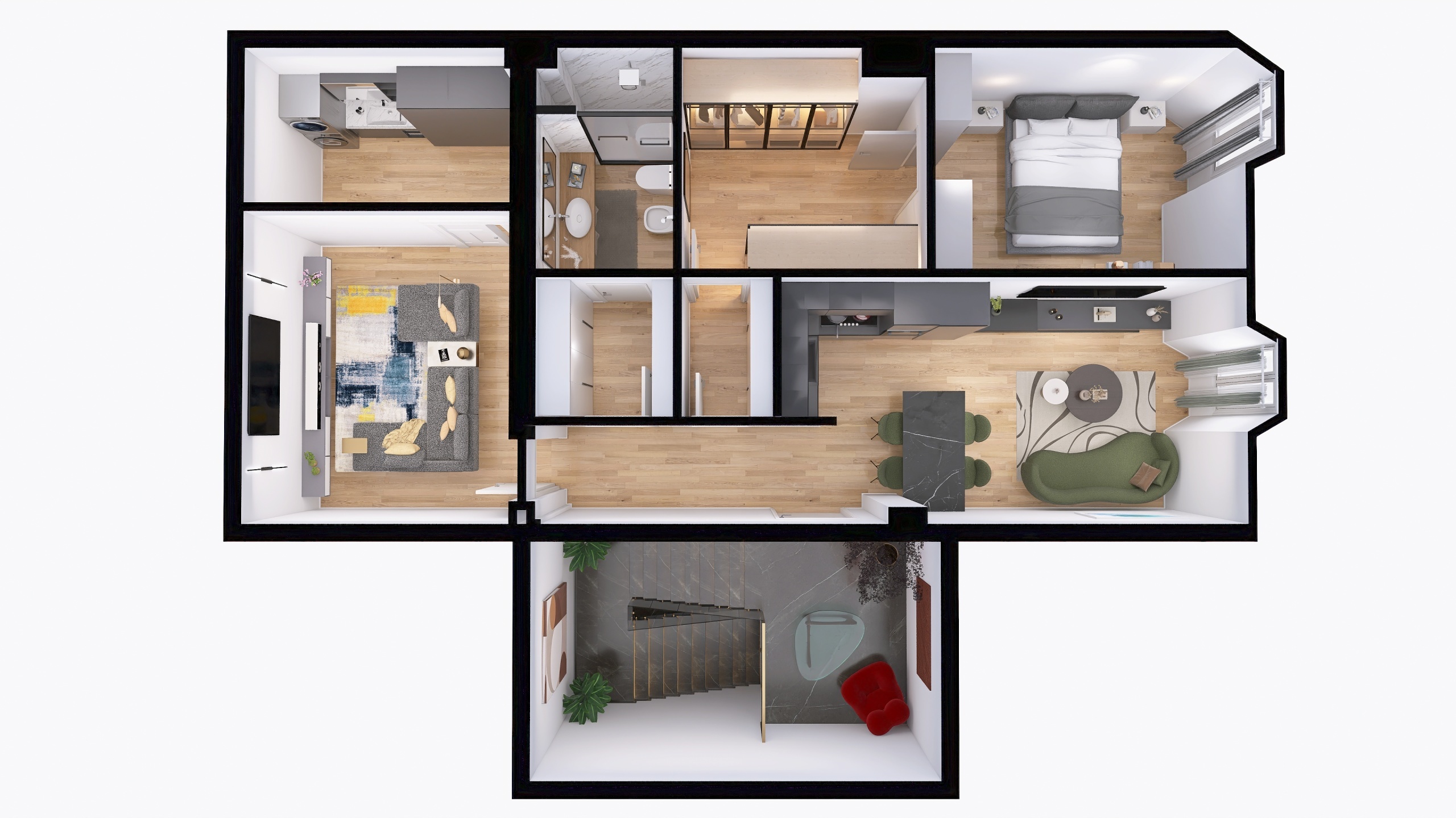 Le immagini dell'annuncio sono RENDER professionali realizzati con le reali finiture da capitolato disponibili, e sono quotati sulle misure effettive dell'immobile, offrendo una rappresentazione fedele delle potenzialità di questa splendida dimora.