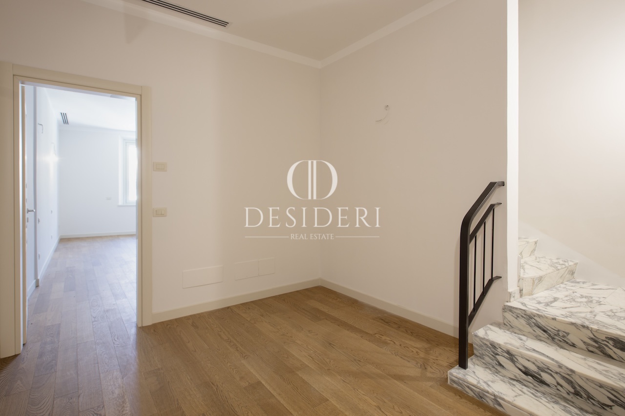 Si accede alla proprietà tramite una gradevole scala a giorno interna che si affaccia su ampia zona ingresso-studio, ottima soluzione per dividere gli ambienti tra zona giorno e zona notte.