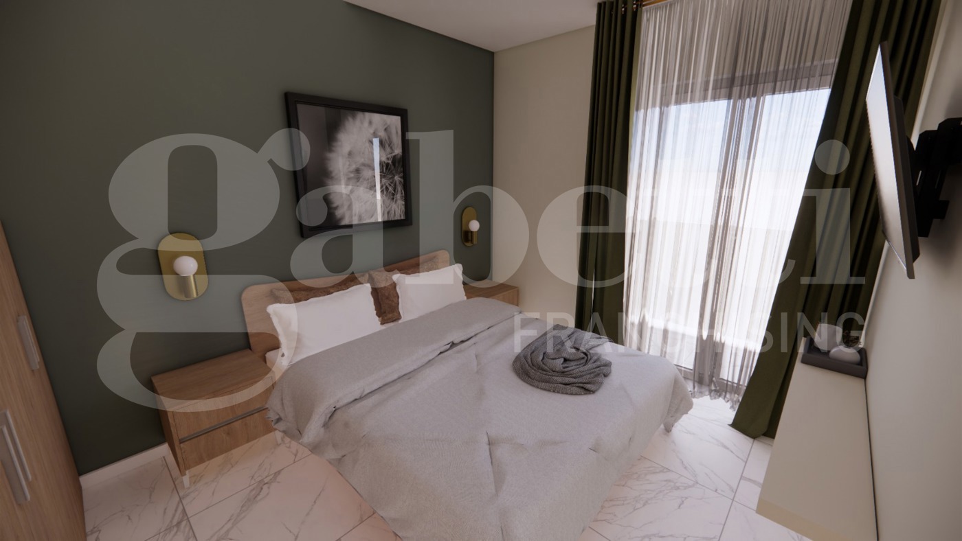 Senza barriere architettoniche, l'appartamento si trova al piano terra di un edificio in costruzione.