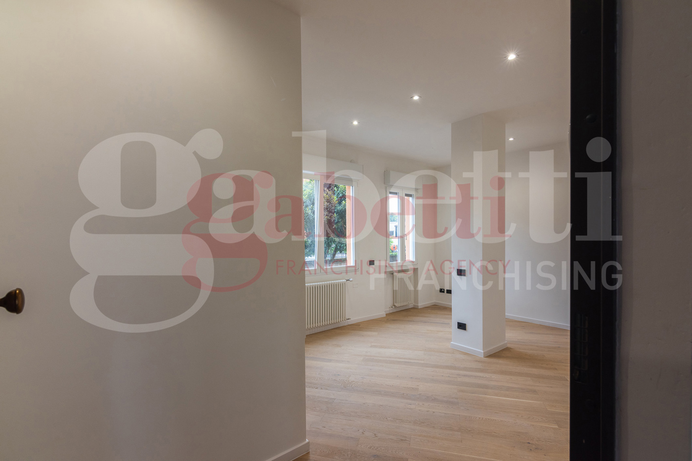 Limmobile stato finemente ristrutturato e dotato di infissi doppio vetro, tapparelle elettriche, A/C, box doccia con getto idromassaggio.