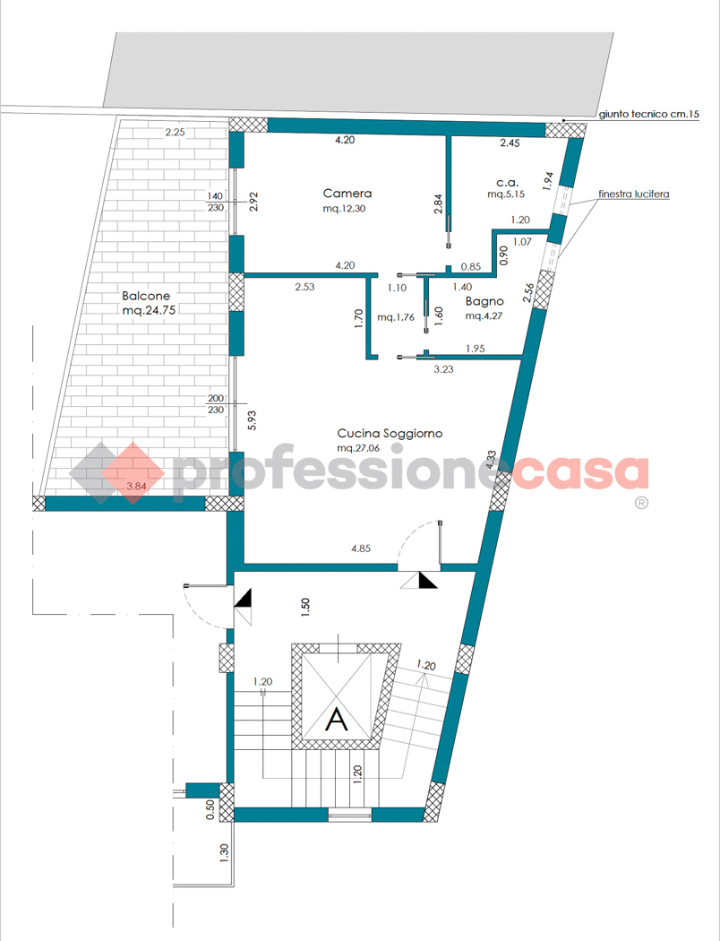 Lappartamento, posto al primo piano di un edificio moderno, composto da luminosa zona living con angolo cottura, ampio balcone, camera da letto con cabina armadio e un bagno.