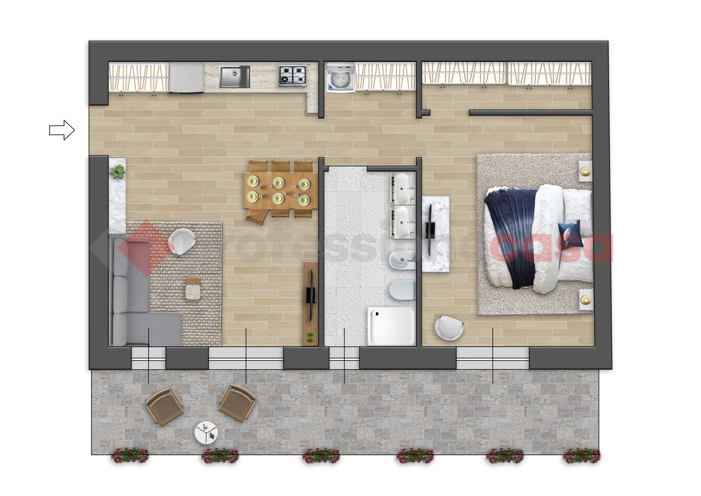 NUOVA COSTRUZIONE IN CLASSE A . A 300 metri dalle Fnm, nel cuore del paese nascer una palazzina di 12 appartamenti con spazi esterni privati e