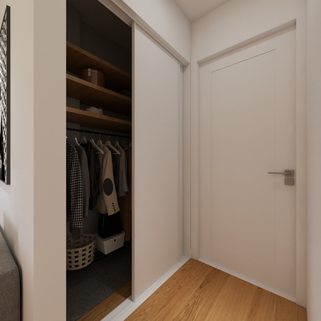 Infine, per una gestione domestica discreta ed efficiente, presente una capiente cabina all'ingresso, ottimizzata per ospitare guardaroba e attrezzature domestiche.