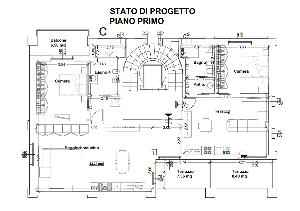 La palazzina unica nel suo genere dotata di ascensore, impianto fotovoltaico con batterie di accumulo per luce, acqua calda, clima freddo e caldo, una caldaia che in caso di necessit supplir alla mancanza di corrente e pompe di calore e raffreddamento in classe A++. ZERO SPESE DI GESTIONE CASA! L'appartamento C posto al primo piano cos composto: Ingresso nell'ampio e luminoso soggiorno con cucina a vista, antibagno, bagno, camera matrimoniale e terrazzo.