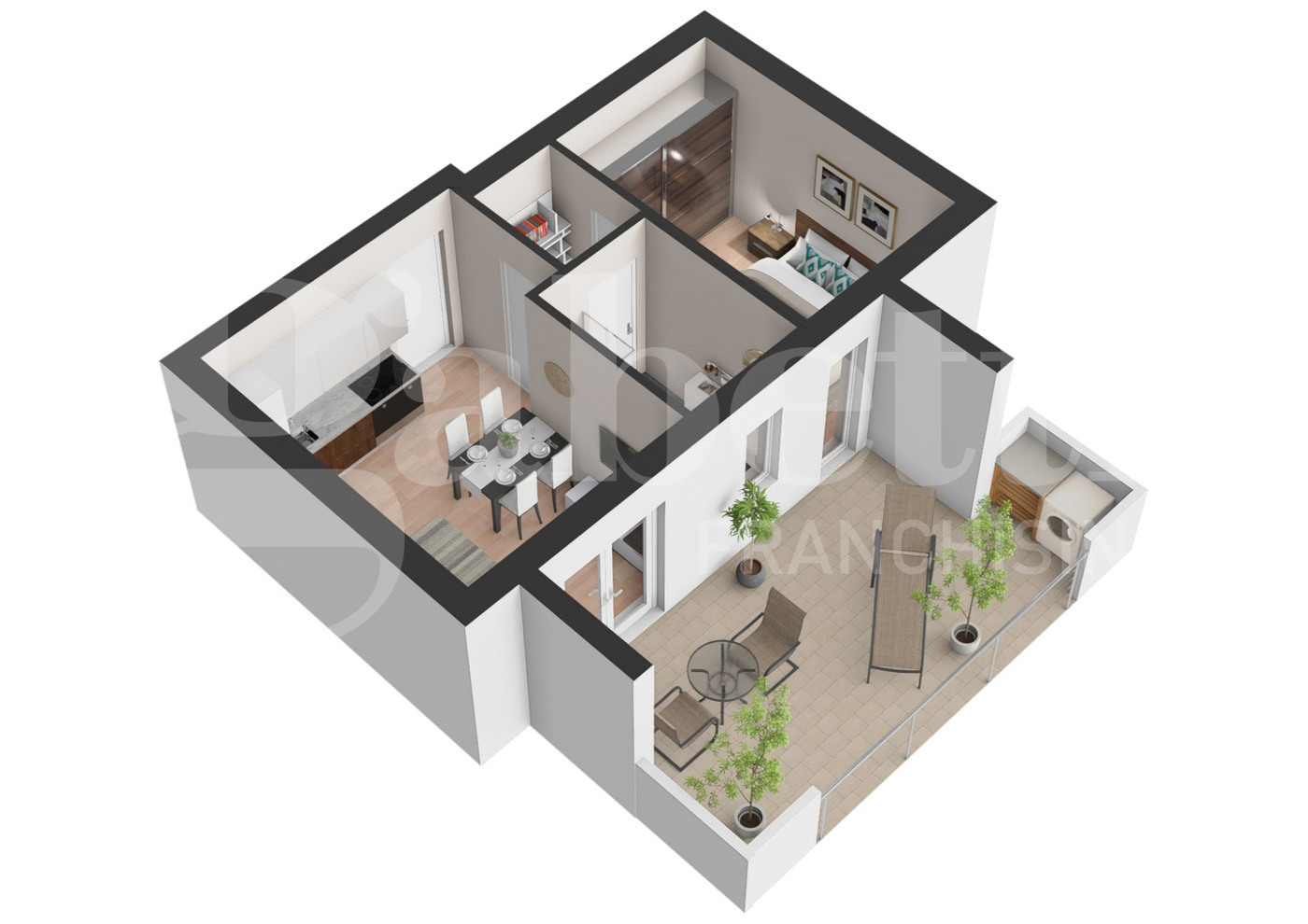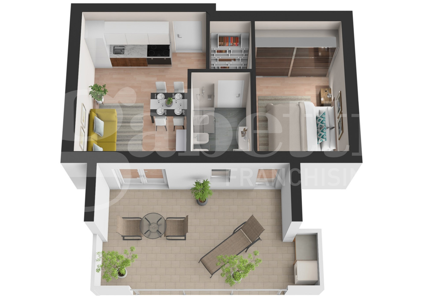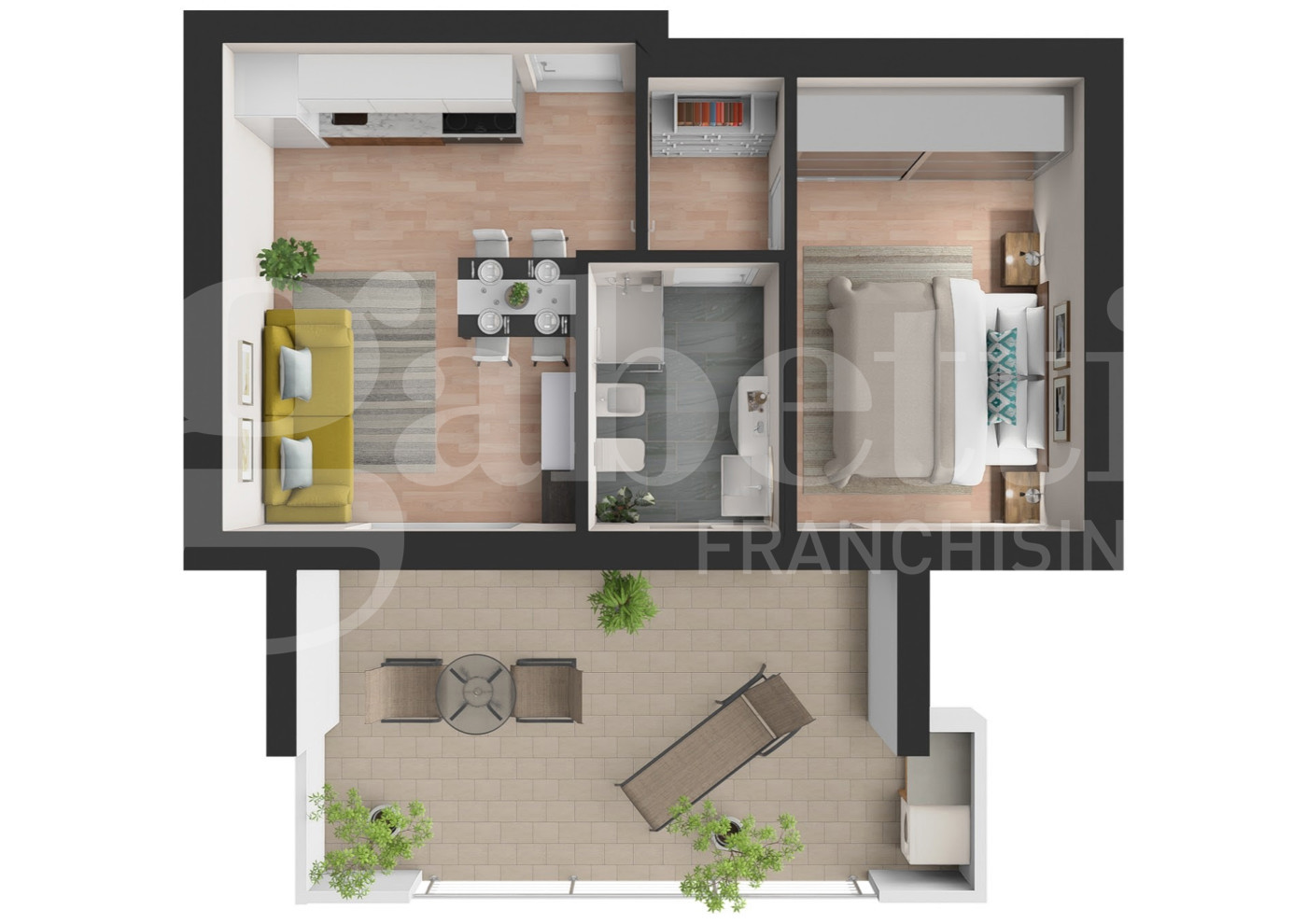 In particolare proponiamo un bilocale, situato al primo piano, si compone di un accogliente soggiorno con angolo cottura, una camera matrimoniale, un bagno finestrato e un ampio terrazzo che regala momenti di relax.