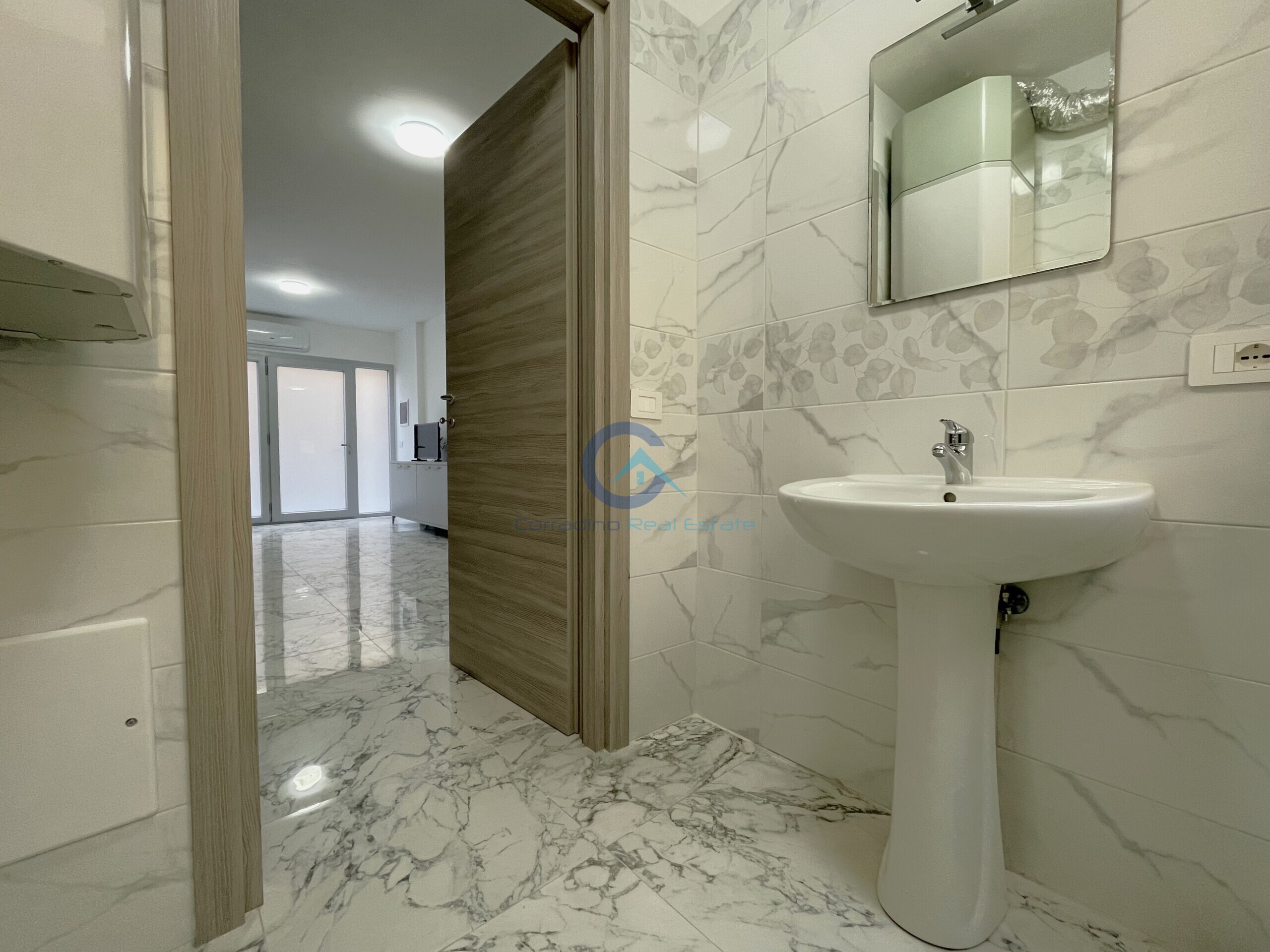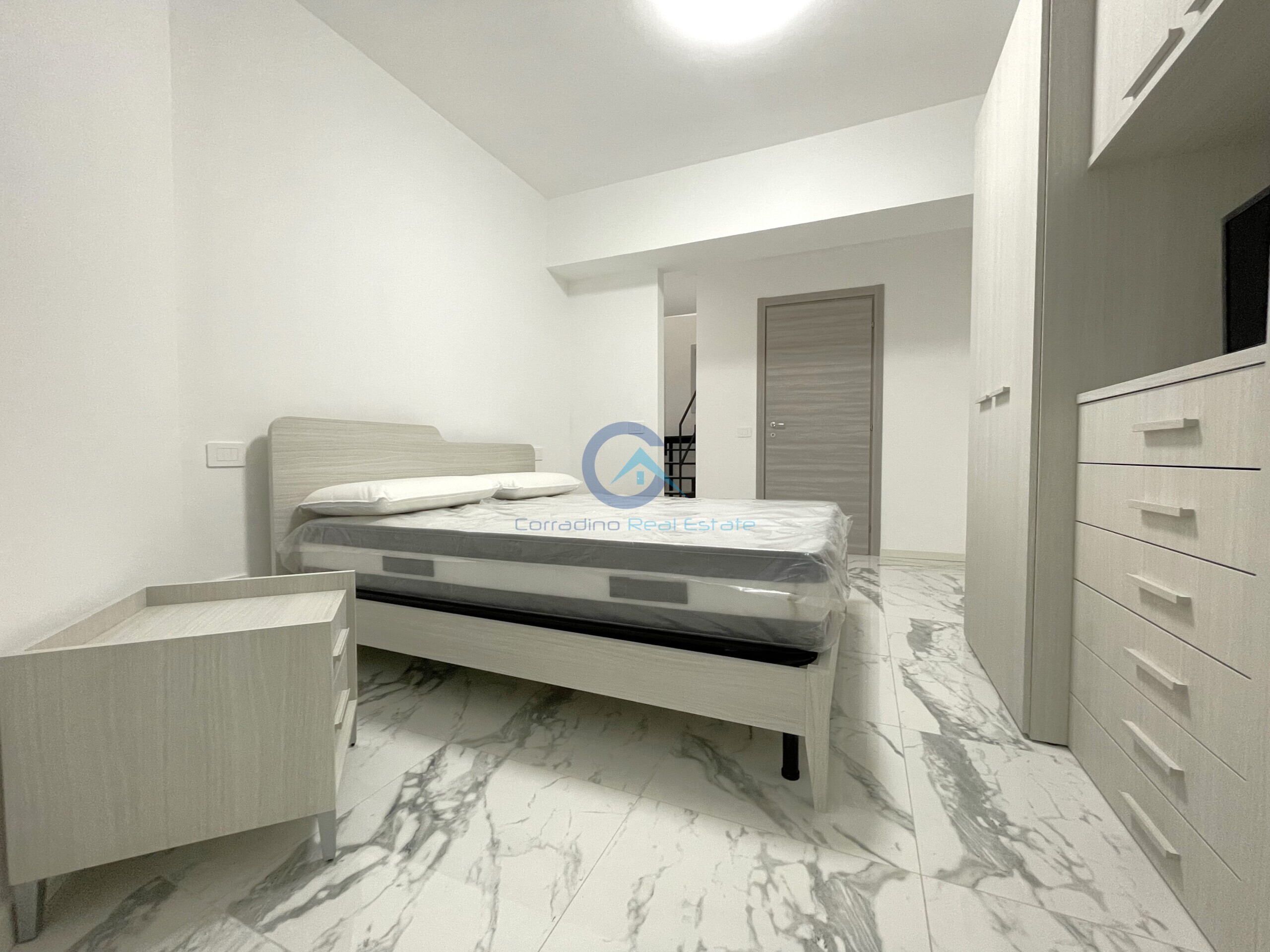 L'appartamento disposto su due livelli si compone da: ingresso su zona living con cucina a vista dotata di piano cottura ad induzione e bagno di servizio al piano terra; camera da letto matrimoniale e bagno con box doccia al piano sottostante.