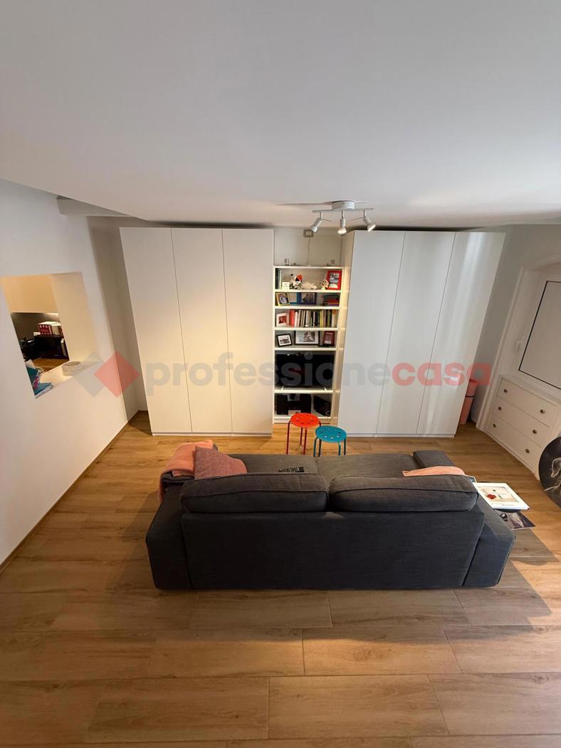 Salotto: Ambiente caldo e accogliente, con accesso diretto al balcone che si affaccia su Corso Sonnino, regalando una vista suggestiva sulla vita del quartiere.