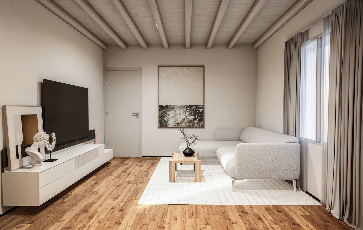 Dotato di riscaldamento a pavimento, travi a vista e cappotto interno, offre un ambiente accogliente e moderno.