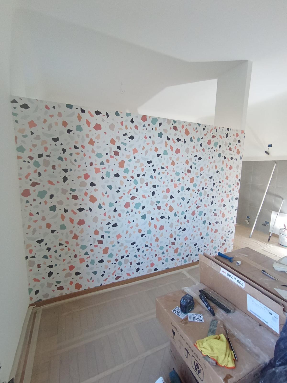 L'appartamento e' cosi' composto: ingresso living su zona giorno, parete cucina a vista, camera da letto, servizio ( no lavatrice) e balcone.