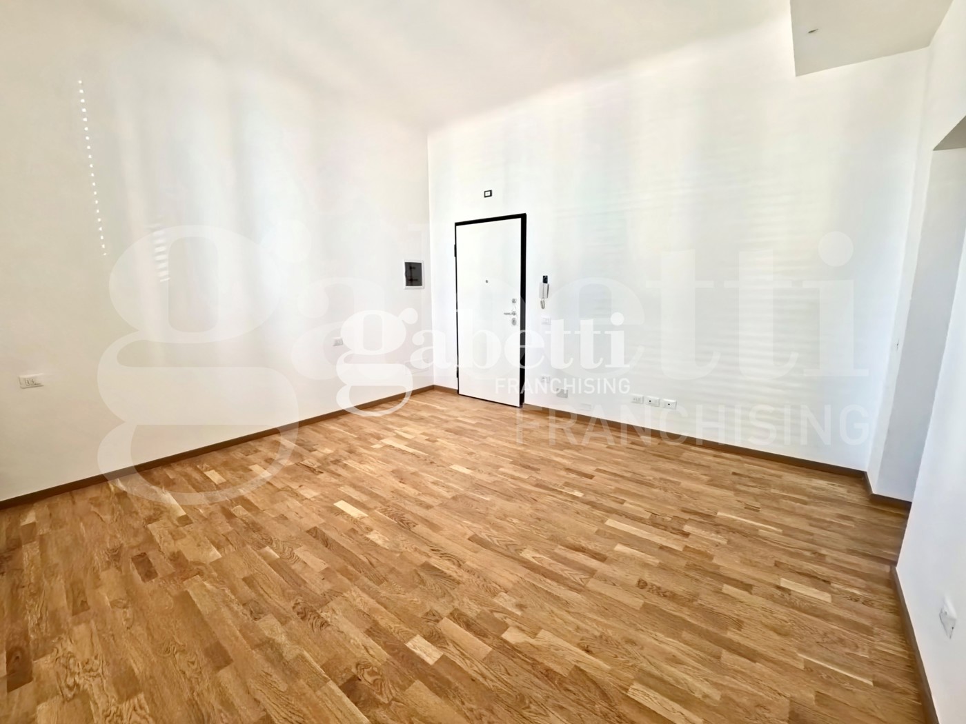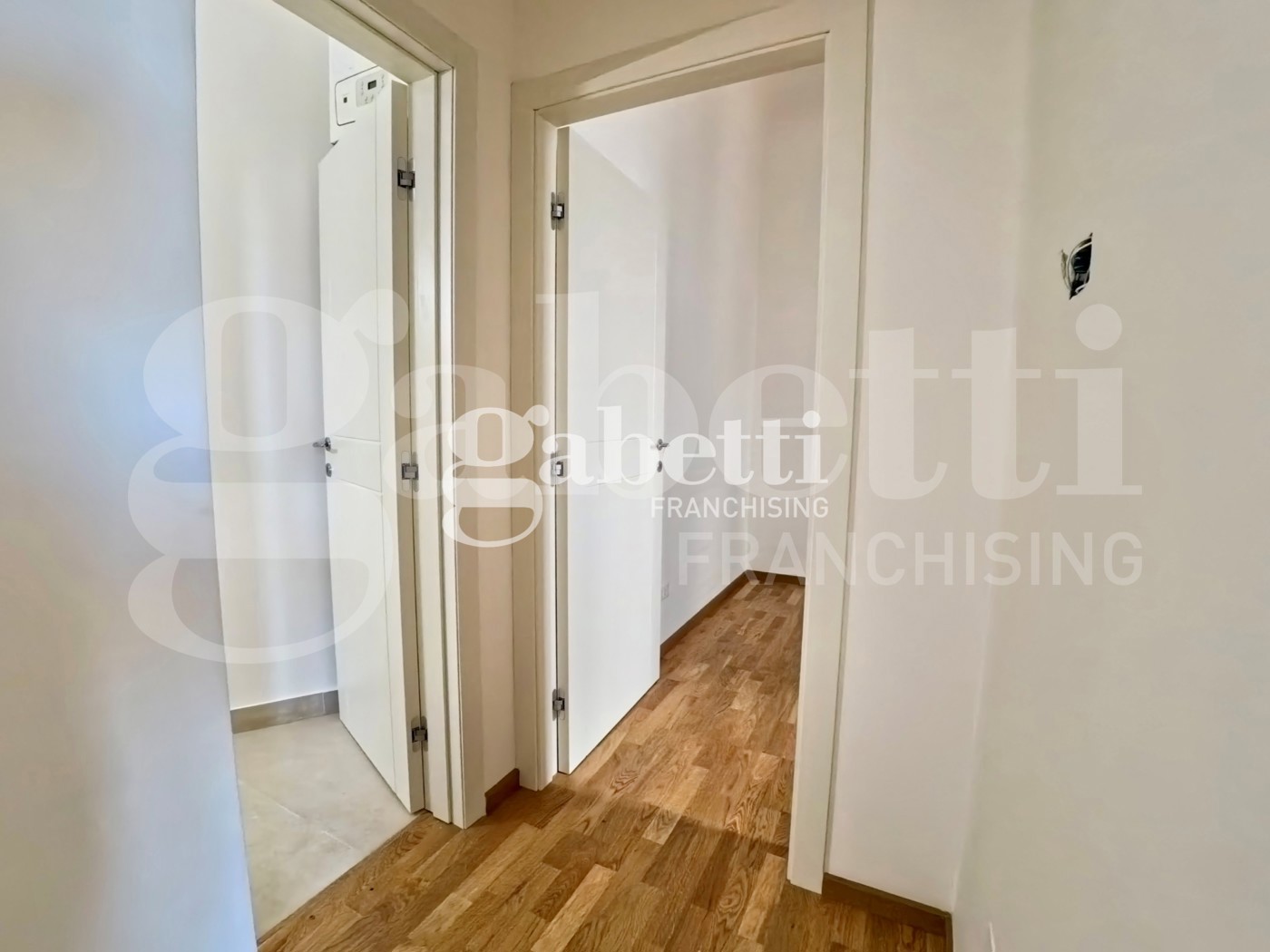 Un disimpegno conduce alla camera matrimoniale e al bagno di generose dimensioni, impreziosito da finiture contemporanee.I materiali scelti parquet naturale e gres porcellanato di pregio conferiscono calore e modernit agli ambienti.