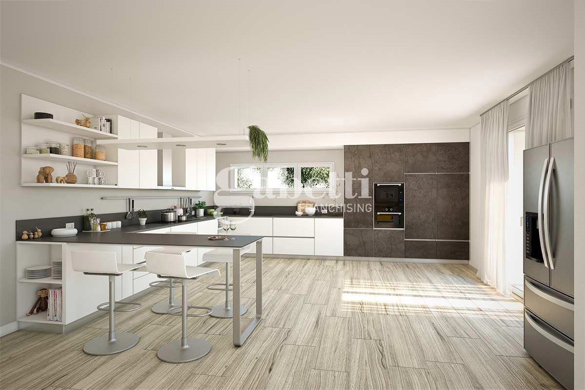 Pavimenti in parquet e rivestimenti in gress porcellanato.