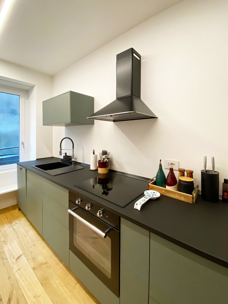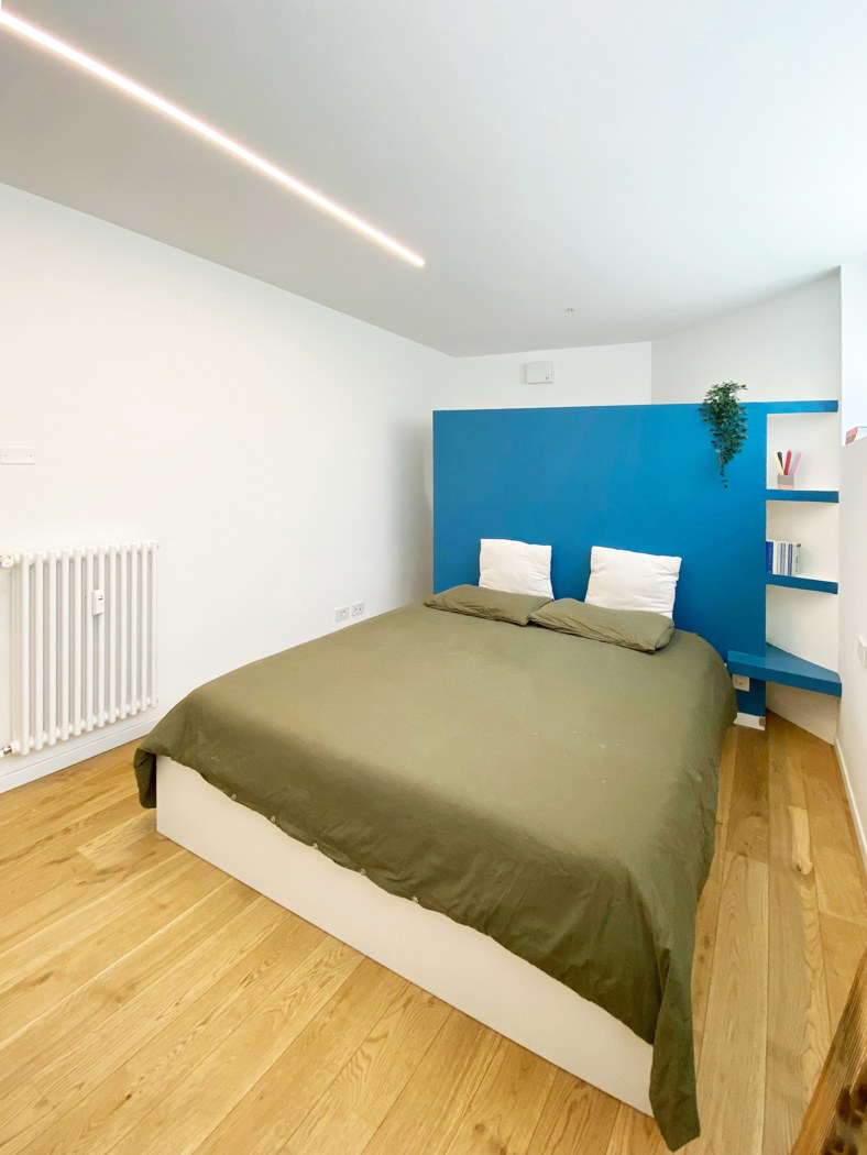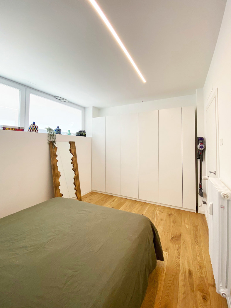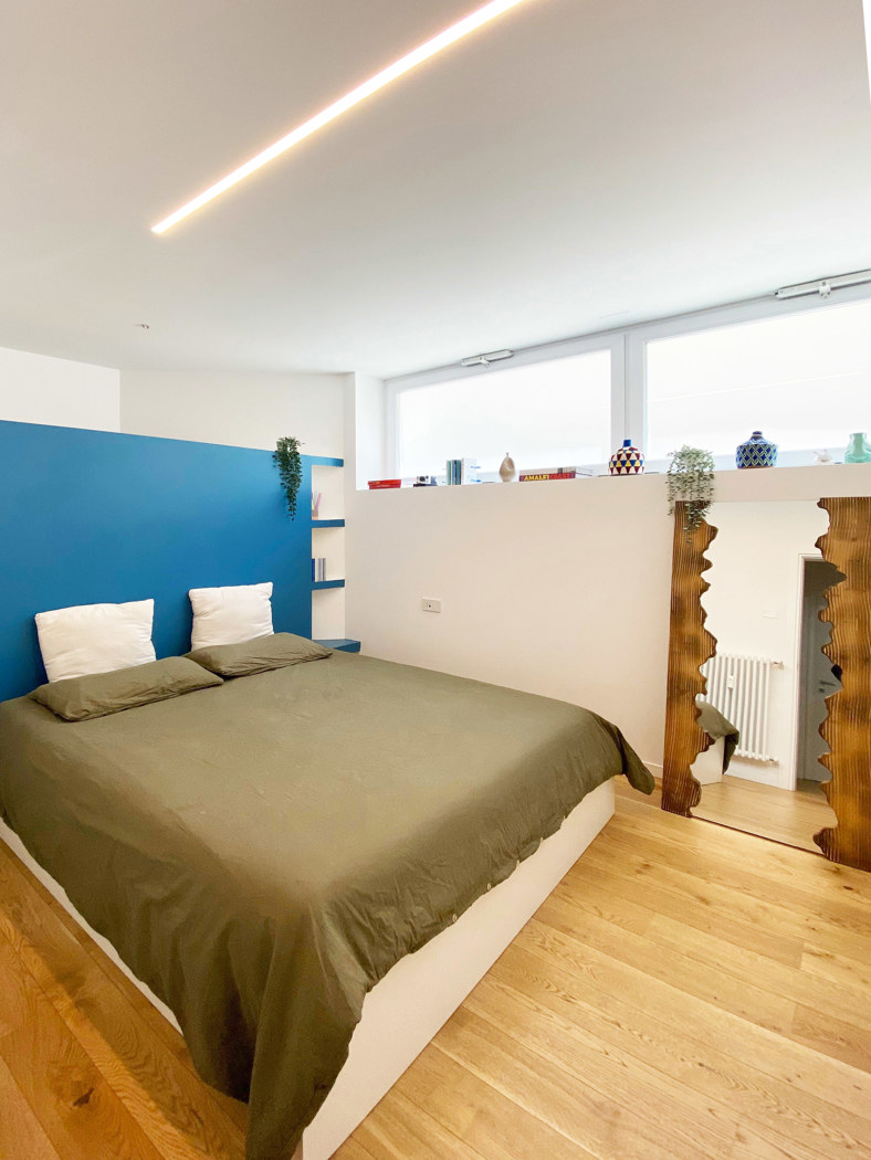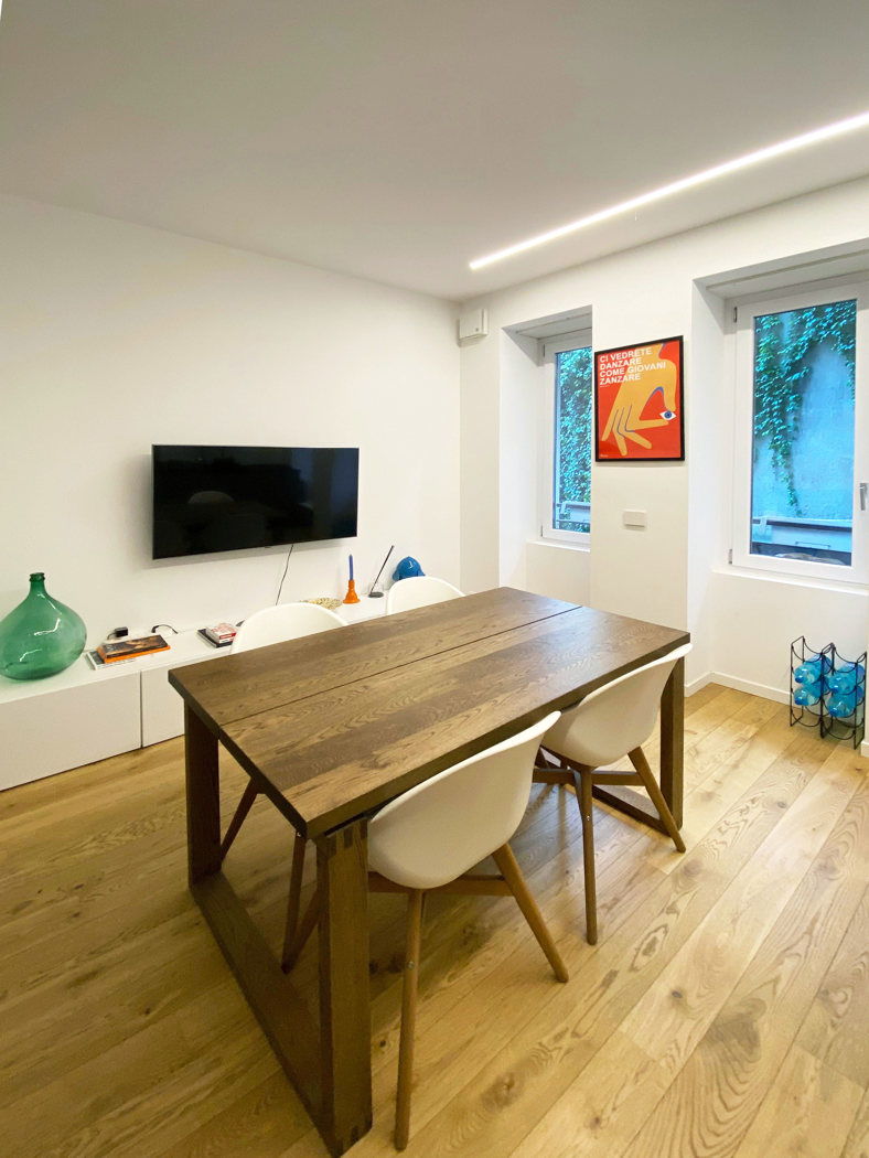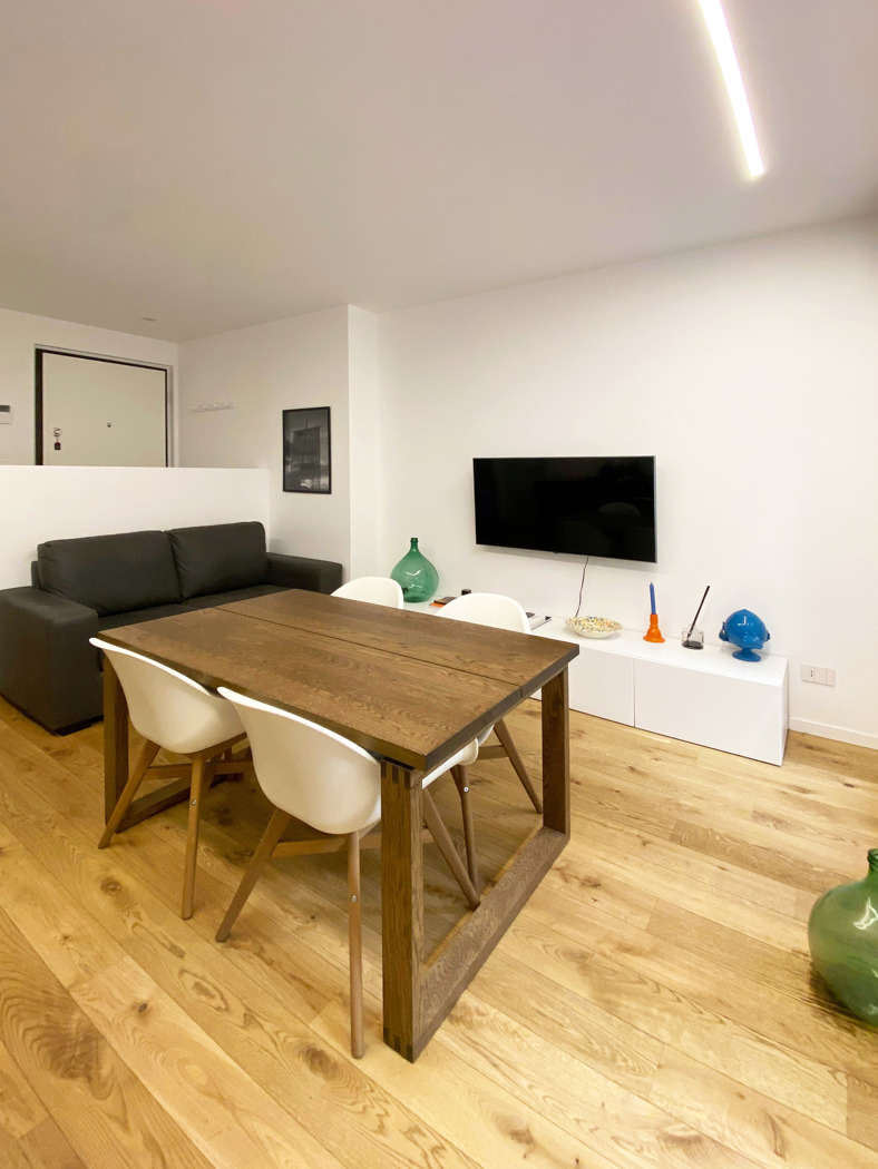 Gli interni, curati in ogni dettaglio, presentano finiture di pregio e un design innovativo: il pavimento in parquet rovere, caldo e accogliente, impreziosisce la zona giorno e la camera da letto, mentre il bagno rifinito in gres porcellanato di alta qualit e completato da sanitari sospesi Ideal Standard.