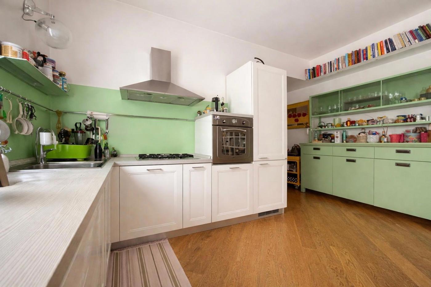 La pavimentazione uniforme in parquet, con listoni obliqui, contribuisce a creare una sensazione di ampiezza visiva, mentre l'aria condizionata in tutti gli ambienti garantisce un clima piacevole in ogni stagione.