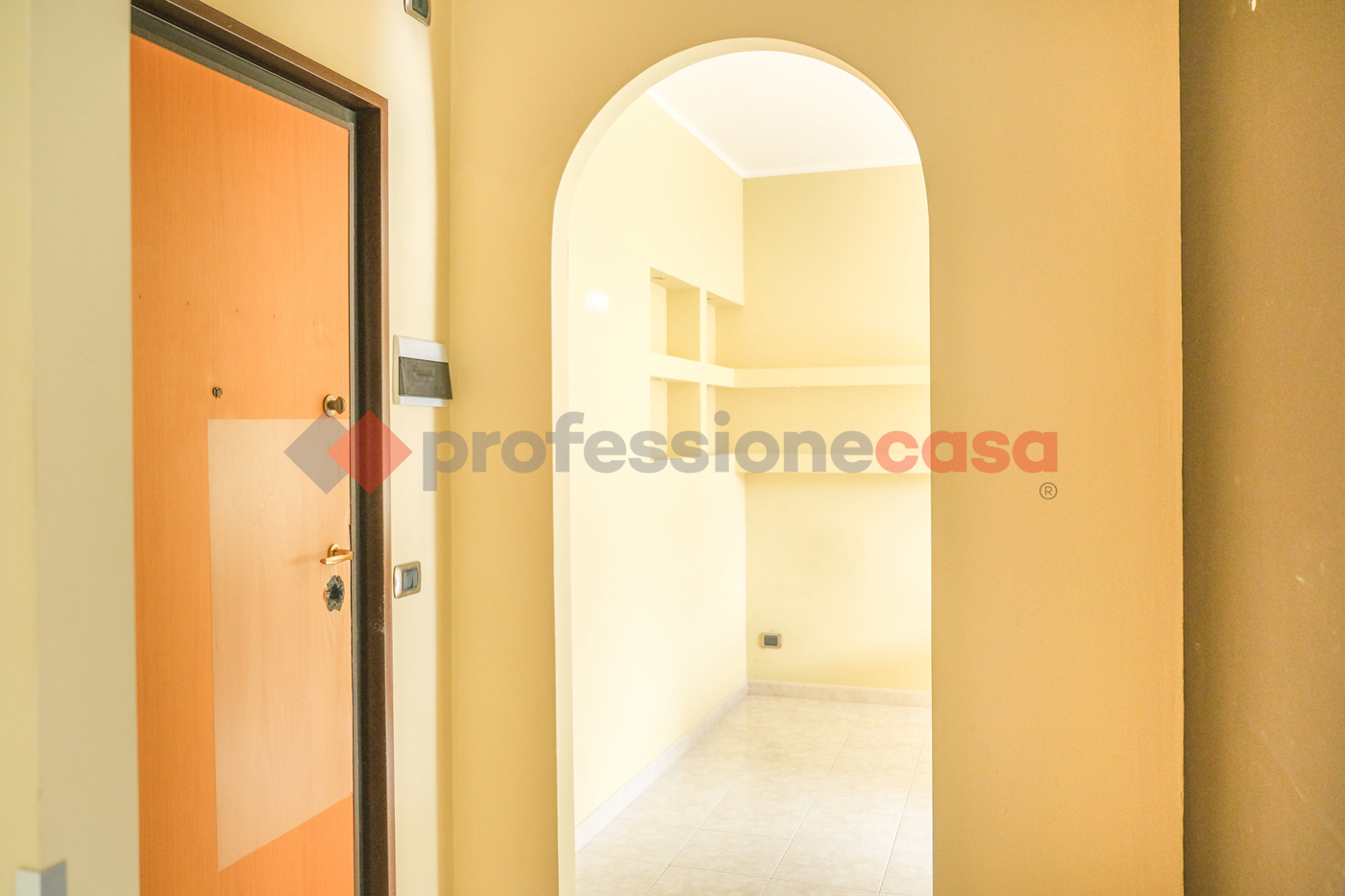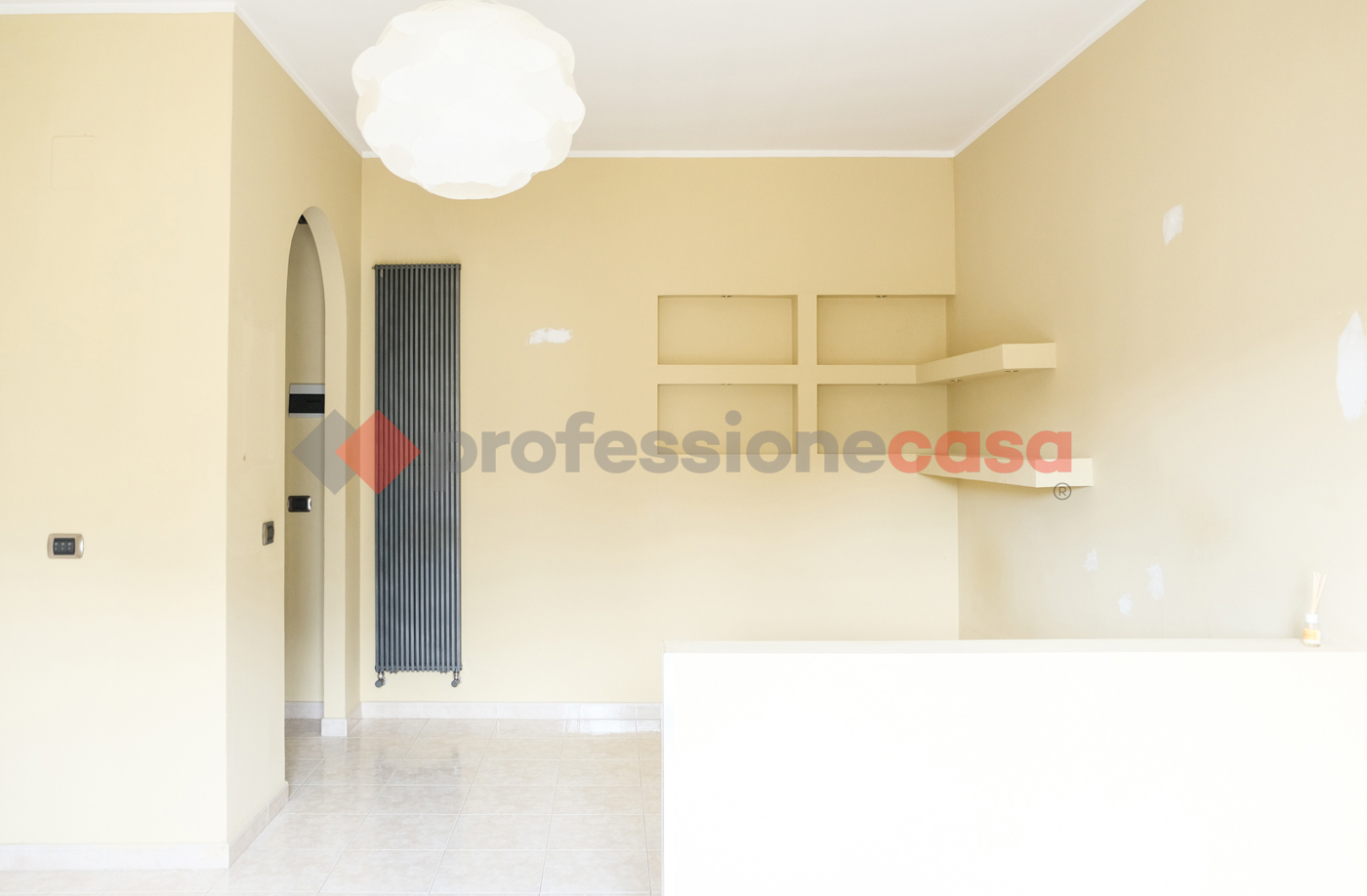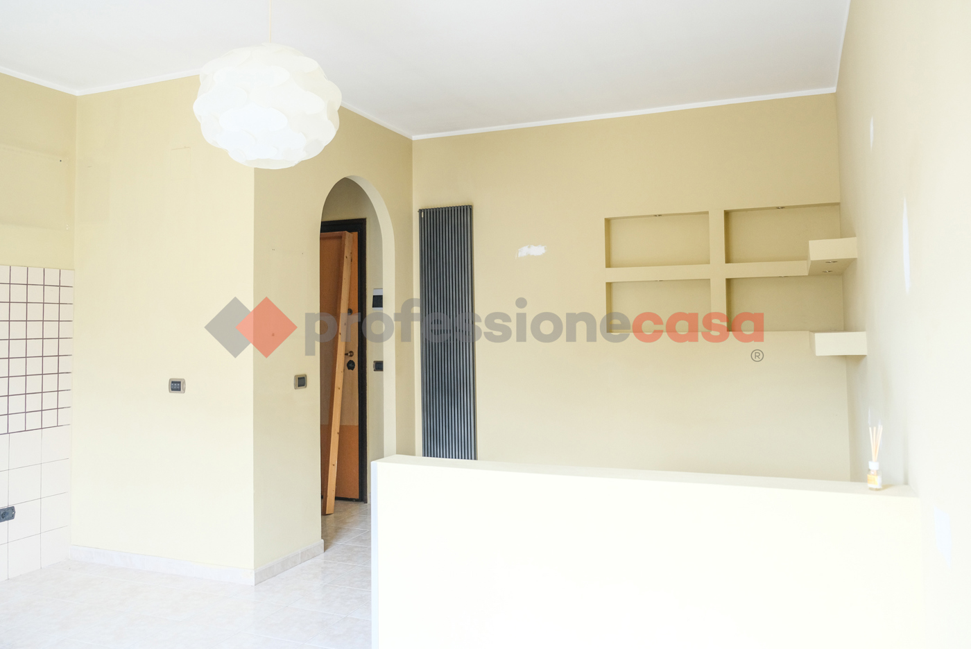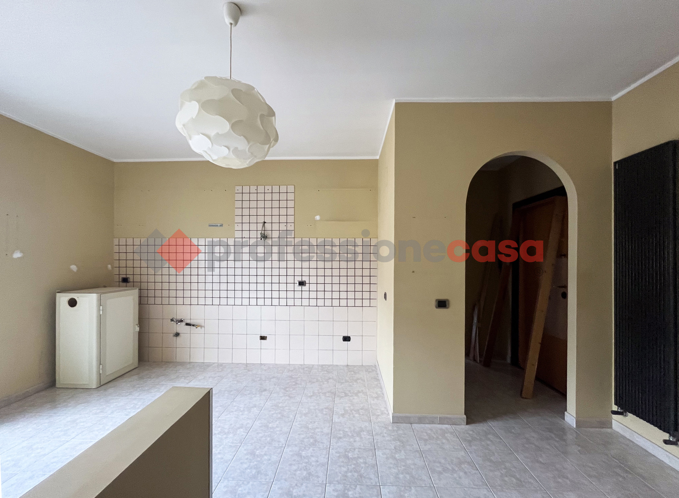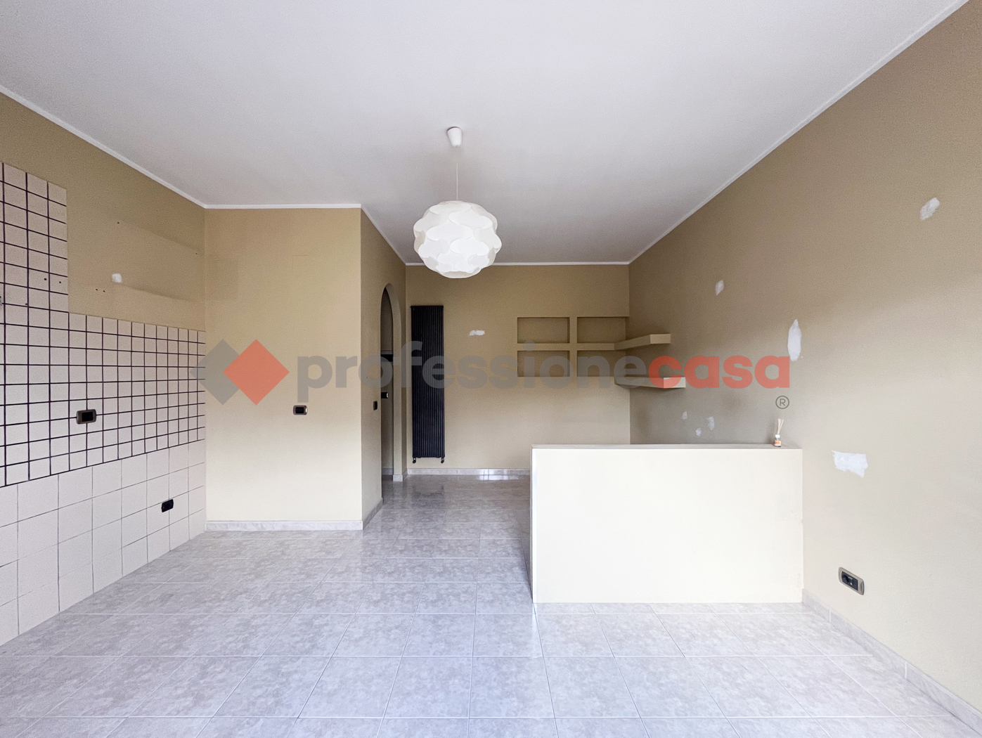 Accedendo dallingresso, un accogliente disimpegno conduce alla luminosissima zona living con angolo cottura, perfetta per condividere momenti di relax e convivialit.