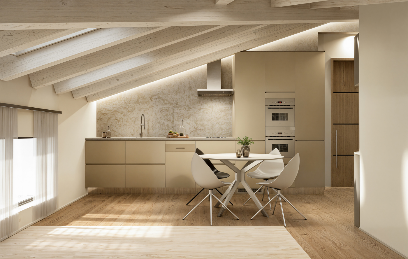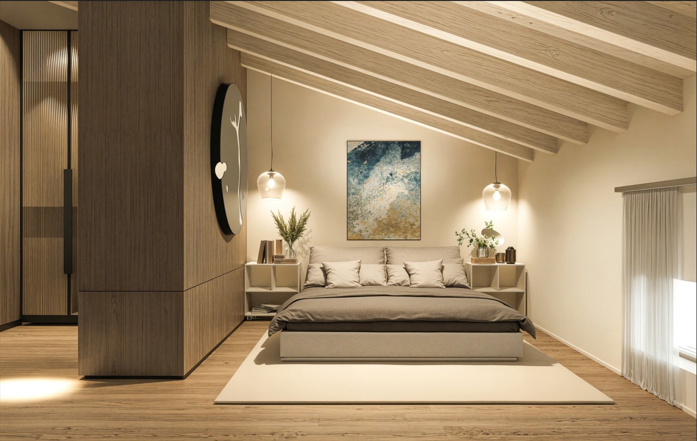 Dotato di riscaldamento a pavimento, travi a vista e cappotto interno, offre un ambiente accogliente e moderno.