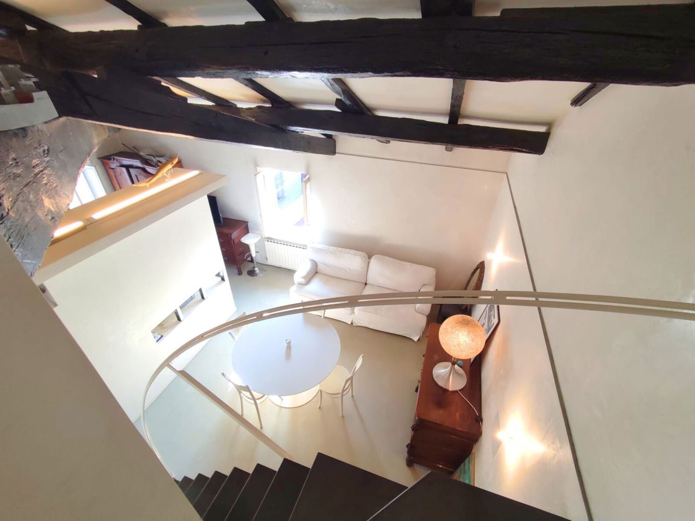 L'appartamento offre uno spazioso soggiorno living, una cucina abitabile, una camera da letto ed al piano sottotetto, un'ulteriore spazio utilizzabile come studio . La doppia esposizione garantisce una luminosit eccezionale in ogni ambiente.