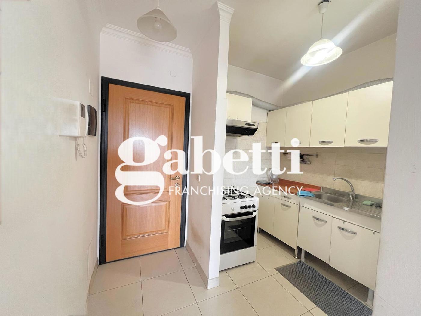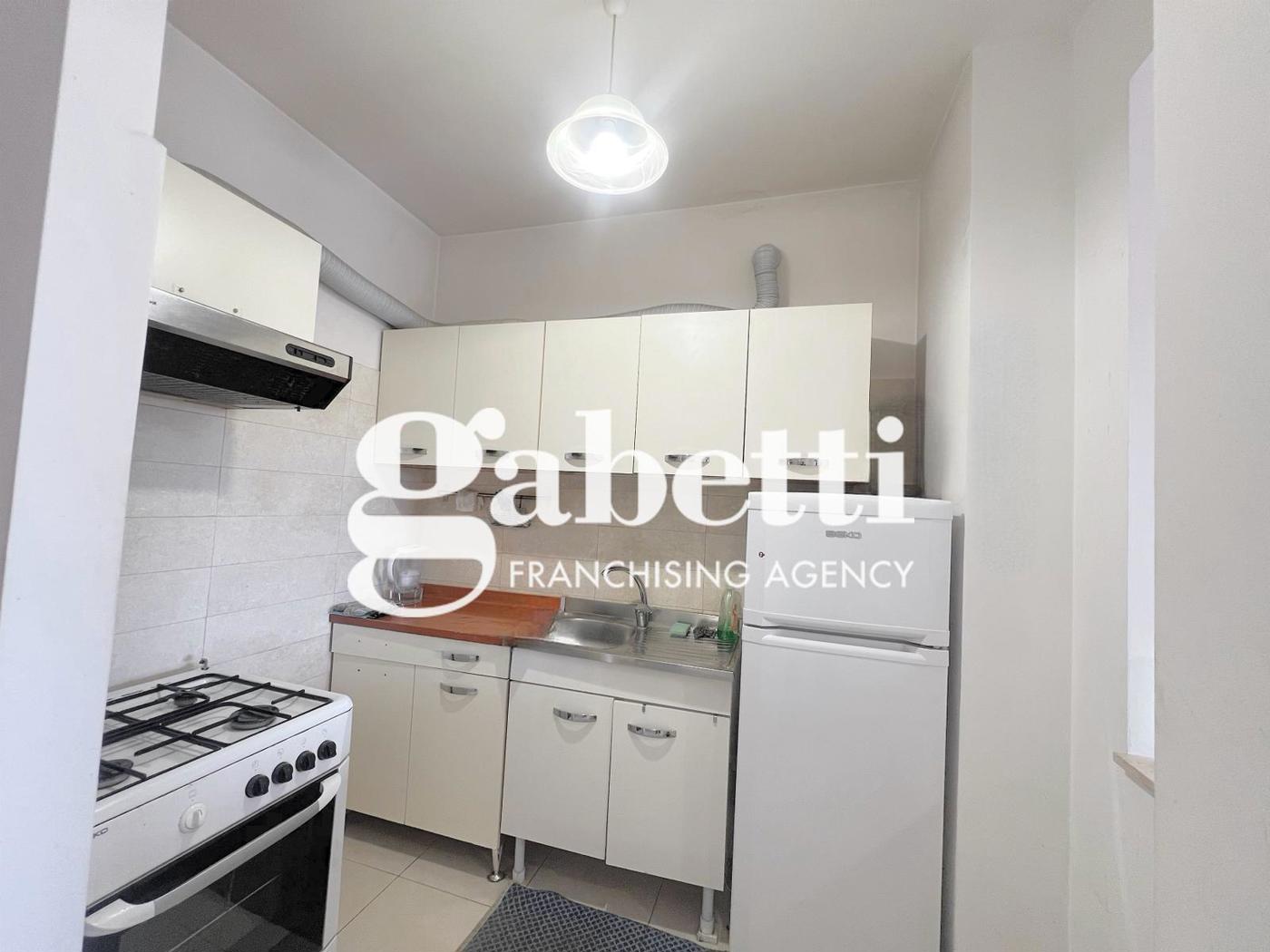 L'appartamento composto da un luminoso salone con cucina a vista, una camera matrimoniale e un bagno.