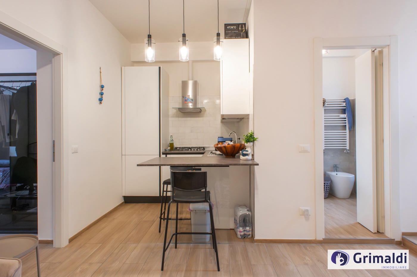 L'unit si presenta in perfetto stato con pavimentazioni in gres effetto legno, infissi in pvc con doppiovetro, tapparelle automatizzate, porta blindata, climatizzazione nella camera e termoarredo nel servizio.