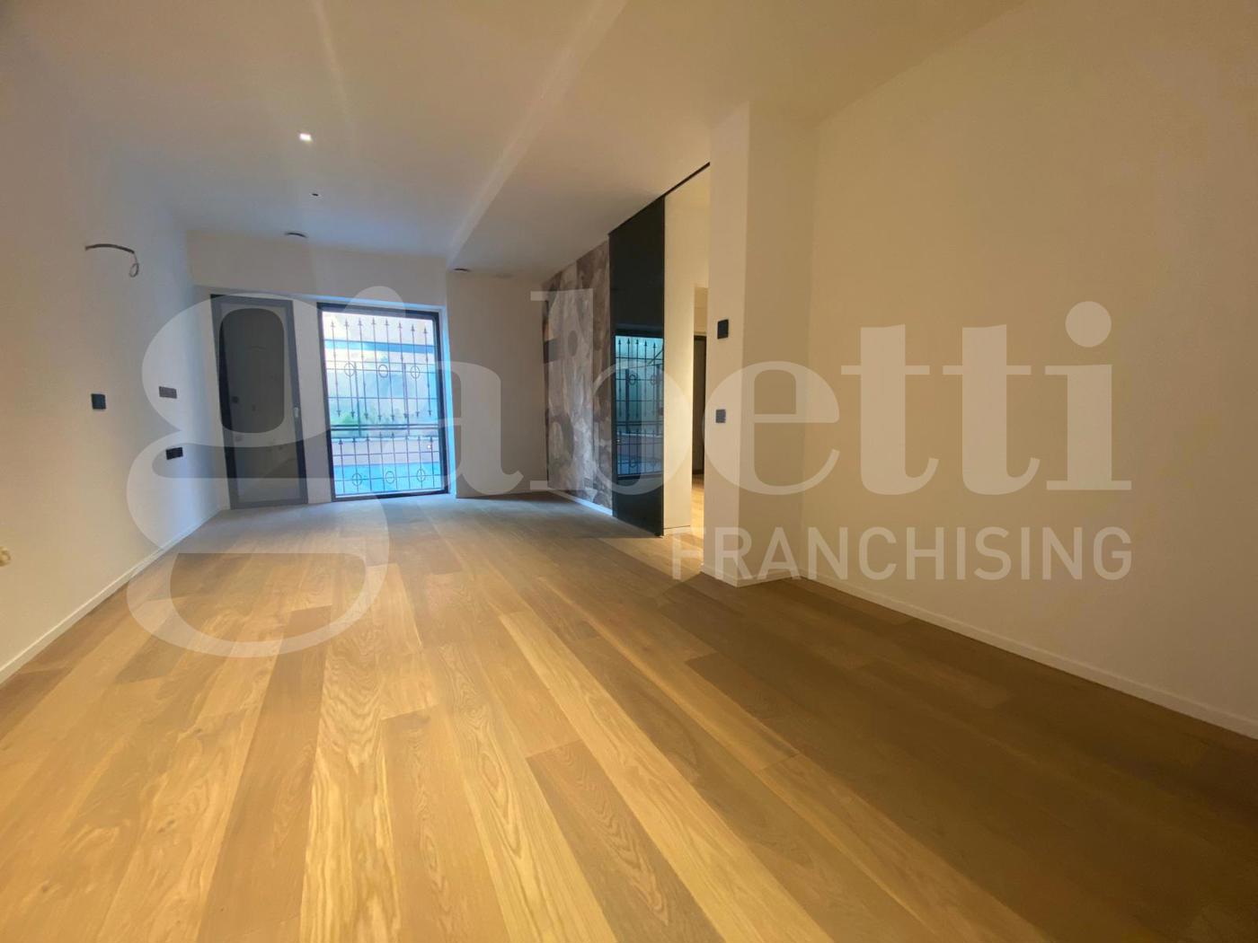 L'appartamento frutto di frazionamento, completamente ristrutturato, dispone di pavimenti in parquet con riscaldamento a terra, infissi a taglio termico, area condizionata canalizzata, riscaldamento autonomo con pompa di calore, domotica, tenda elettrica a copertura del terrazzo, illuminazione esterna.