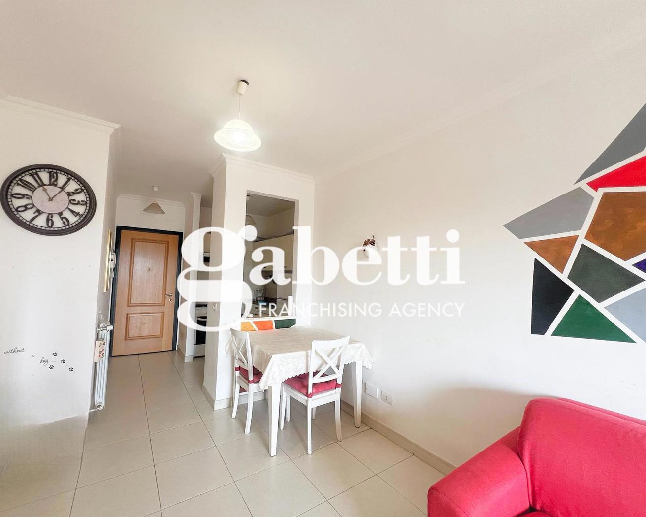 L'appartamento composto da un luminoso salone con cucina a vista, una camera matrimoniale e un bagno.