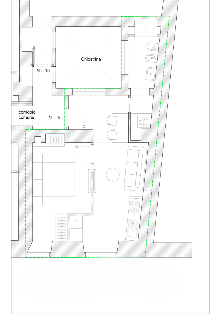 Oltrepassato il portone principale si acceder ad uno spazio comune che condurr allingresso dellappartamento.