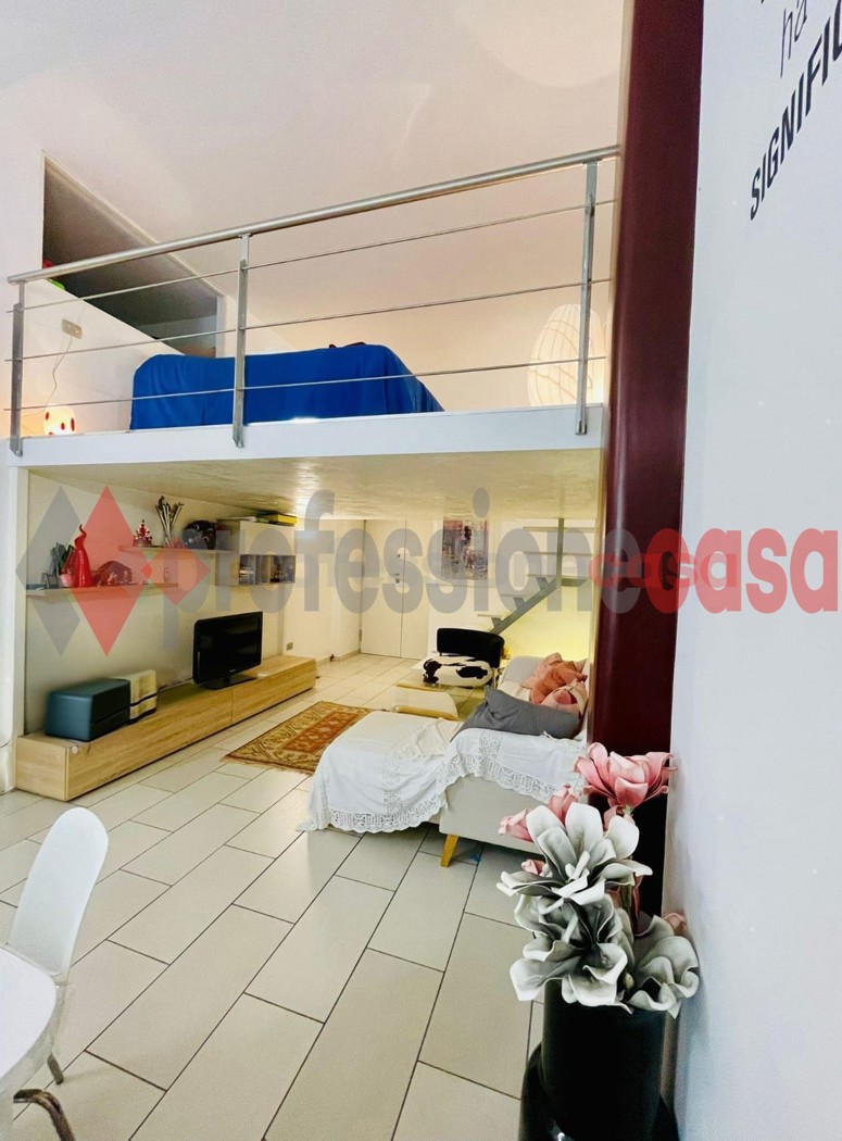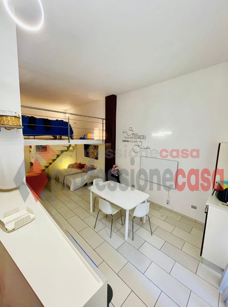 Limmobile composto da ingresso, ampio salone con cucina a vista, camera da letto soppalcata e bagno.
